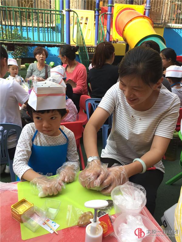 伴随着悦耳动听的歌曲声,幼儿园的迎双节主题亲子活动拉开了序幕。在“亲亲厨艺”小白老师的讲解下,孩子和家长们挽起衣袖,带上手套,专心致志的开始制作自己的“冰皮月饼”。只见和面、包馅、入模、成型、包装……各种材料经过孩子和大人们的默契配合、巧手制作,打制出来的冰皮月饼果真是有模有样。孩子们在动手制作月饼的活动中不仅了解到中国的传统文化和风俗,还感受了中秋的喜庆和甜蜜。老师们还通过音乐欣赏、中秋故事、游戏让孩子们更多的了解中秋节的来历与典故,知晓中秋节的许多趣事。