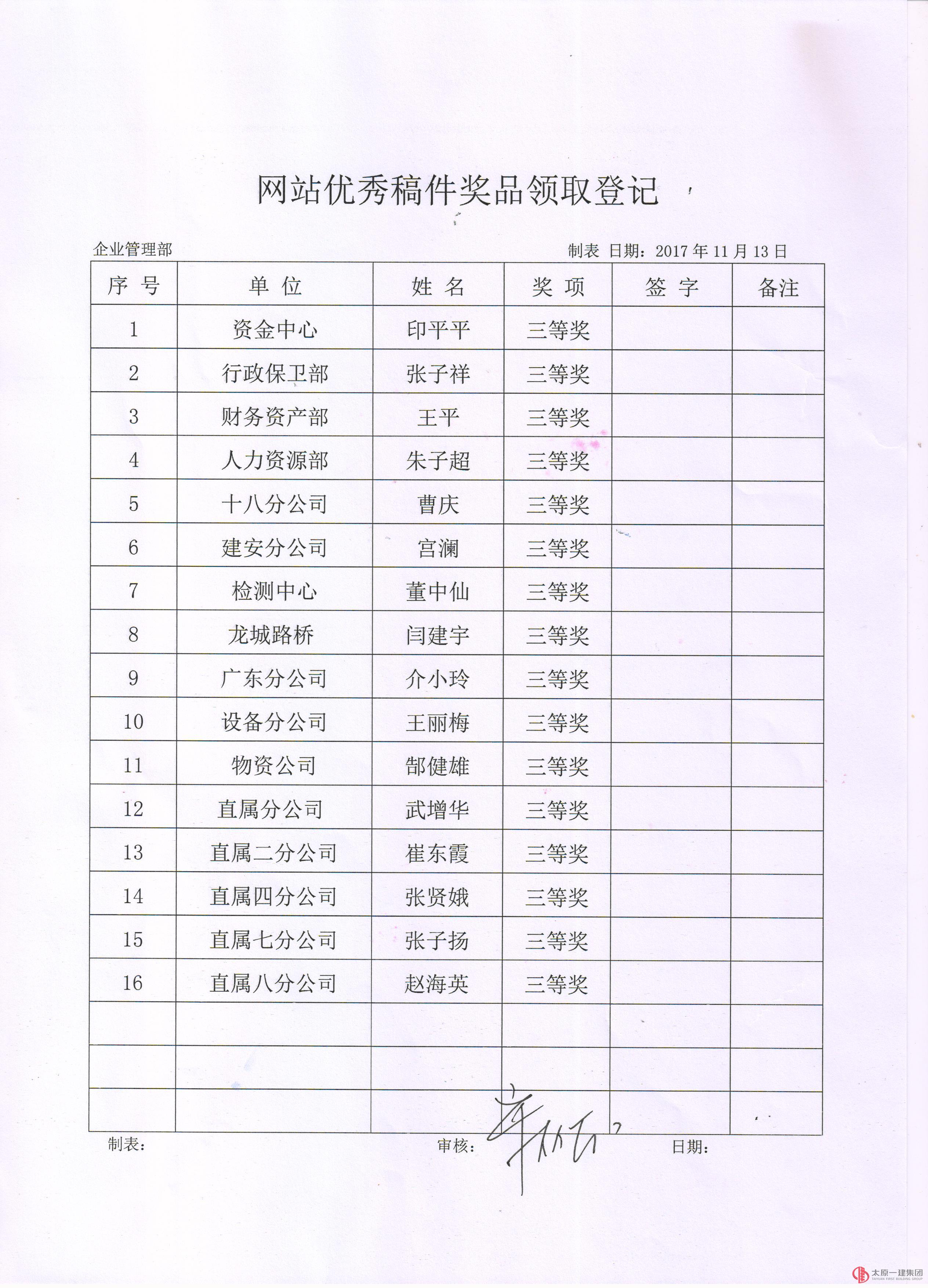 企业网站是企业对外门户,代表着企业形象,发挥着喉舌作用,网站宣传报道对于企业正面形象的树立及知名度的提高具有重要意义。今年以来,各单位各部门围绕中心,服务大局,坚持正面宣传,坚持团结稳定鼓劲,在网站宣传报道上作出了积极的贡献,据统计,从2016年11月7日—2017年11月6日,集团公司机关各部门和各基层单位122名宣传报道者全年共计发布882篇宣传报道,为集团公司在社会各界影响力的提升做出了贡献,使集团公司网站在全国建筑业系统网站中无论从更新速度、宣传内容、报道数量等各方面都名列前茅。为此,企业管理部根据全年门户网站报道宣传的内容、数量、传播力和影响力评选,经集团公司宣传思想工作领导组审核通过,对优秀稿件作者给予表彰并奖励。同时, 集团公司希望各基层单位、机关各部门今后积极关注网站、踊跃发表文章,全面宣传企业文化和信息,进一步扩大企业知名度和美誉度!