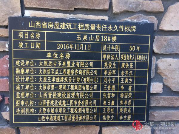 2017年12月11日由直属四分公司承建的玉泉山居项目1-1#楼、1-2#楼、1-17#楼、1-18#楼顺利通过竣工验收。参加验收的单位有太原市质量监督检查站、太原远古玉泉置业有限公司、山西晋投建设监理有限公司、山西信至成工程勘察咨询有限公司、太原王孝雄建筑设计院、太原市第一建筑工程集团有限公司直属四分公司、山西中鼎建筑工程质量检测有限公司、太原市城市建设工程检测有限公司。受建设单位委托,山西晋投建设监理有限公司主持了验收会议,并由太原市质量监督检查站对验收过程进行了全程监督。