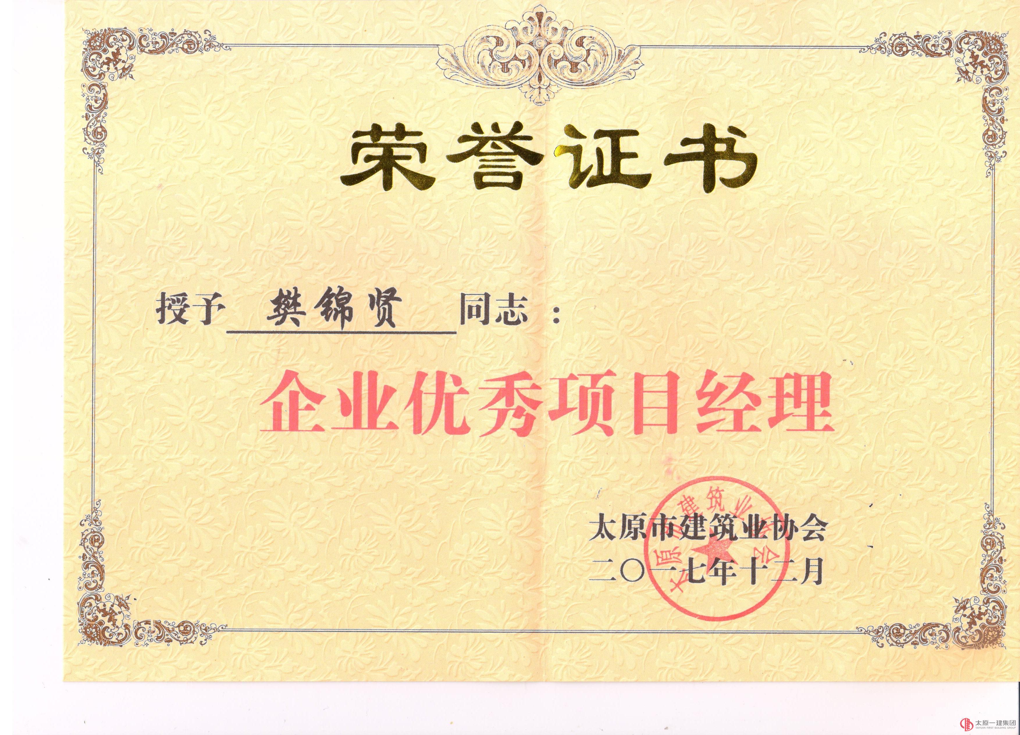 集团公司被评为2017年太原市优秀建筑企业