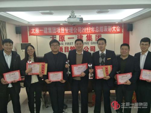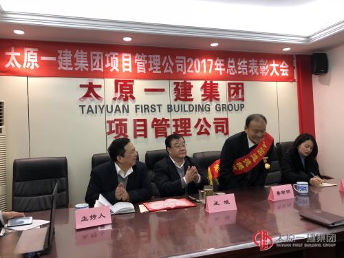 集团公司领导和项目管理公司总经理王斌共同为2017年度表现突出的五个先进集体、十一个先进个人颁发了奖杯、证书和奖品,王贵聪董事长为项目管理公司2017年度特别贡献奖获得者黄金鑫颁发证书和奖金拾万元。