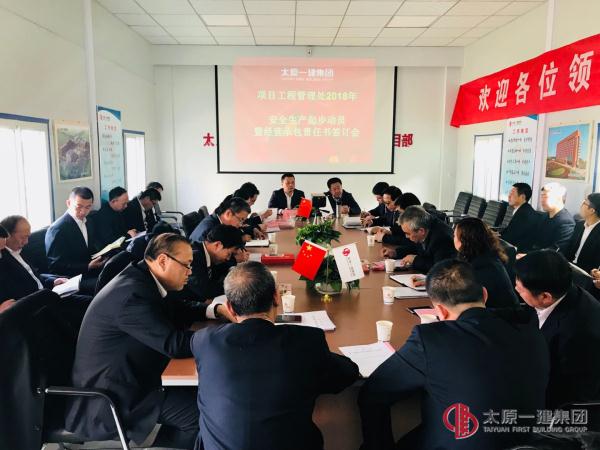2018年3月7日下午,项目工程管理处在太原市二十一中项目工地召开了2018年安全生产起步动员会暨经营承包责任书签订会议,会议由项目工程管理处处长李朝峰主持。集团公司董事长王贵聪、分管领导司中谦及项管处班子成员和各项目部负责人、项目经理、青年代表参加了本次会议。