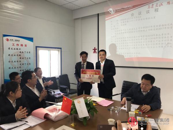 会议第一项由主任会计师孙天明通报2017年项管处经营指标完成情况;第二项由处长李朝峰对清徐分公司经理王润修发放2017年经营承包超额兑现奖14.37万元;第三项主任经济师米晓瑞宣读介绍项管处2018年承包责任书并对2018年经营承包责任书做解释说明;第四项由处长李朝峰同各项目部部长签订经营承包安全生产、工程质量、消防安全、治安保卫责任书;第五项由副处长刘泰宏做了项管处2018年安全生产起步的具体工作安排;第六项工会主席高荣珠宣读集团公司有关表彰决定;第六项处长李朝峰结合3月3日集团公司会议精神对我处2018年总体工作安排部署:项管处2018年主要工作措施为六个一定:1、一定要认清形势,承揽上一定规模的自建任务;2、一定要铸牢安全生产的防线;3、一定高质量抓好安全生产起步;4、一定要牢固树立我能行、我必行的企业自信;5、一定要有不折不扣的执行力;6、一定要努力提升个人能力。第八项由集团公司分管领导司中谦作指导讲话:1、全面贯彻落实集团公司2018年的各项工作安排,振奋精神,强化落实意识,将王董事长提出的“我能行、我必行”贯穿于全年各项工作的始终,抓好承揽任务的龙头,搞好施工现场的重头;2、安全生产要把安全放到第一位,抓好施工现场的安全管理;3、要提升项管处各个管理层面的水平以及各个管理人员的素质。最后集团公司董事长王贵聪对项管处安全生产起步动员做指导:项管处是个有情怀的团队、是个重情重义的团队、是个和谐的团队、是个有战斗力的团队、是个有朝气、有霸气的团队、是个有理想、有梦想的团队;看到了项管处三个可喜的变化;1、以项目承包为主转向自建总包为主的经营模式是未来的希望;2、由以前的项目部承揽任务为主转向处室承揽为主;3、由过去项目部成本核算转向处室集中核算。对项管处提出了五点希望:1、加快优胜劣汰整合的步伐;2、加快制定合理、公平、有效的经营模式;3加快效益、资金、人才、业绩全方位积累的步伐;4、加强学习,注重创新;5、打造亮点,干出特色,保住模范。