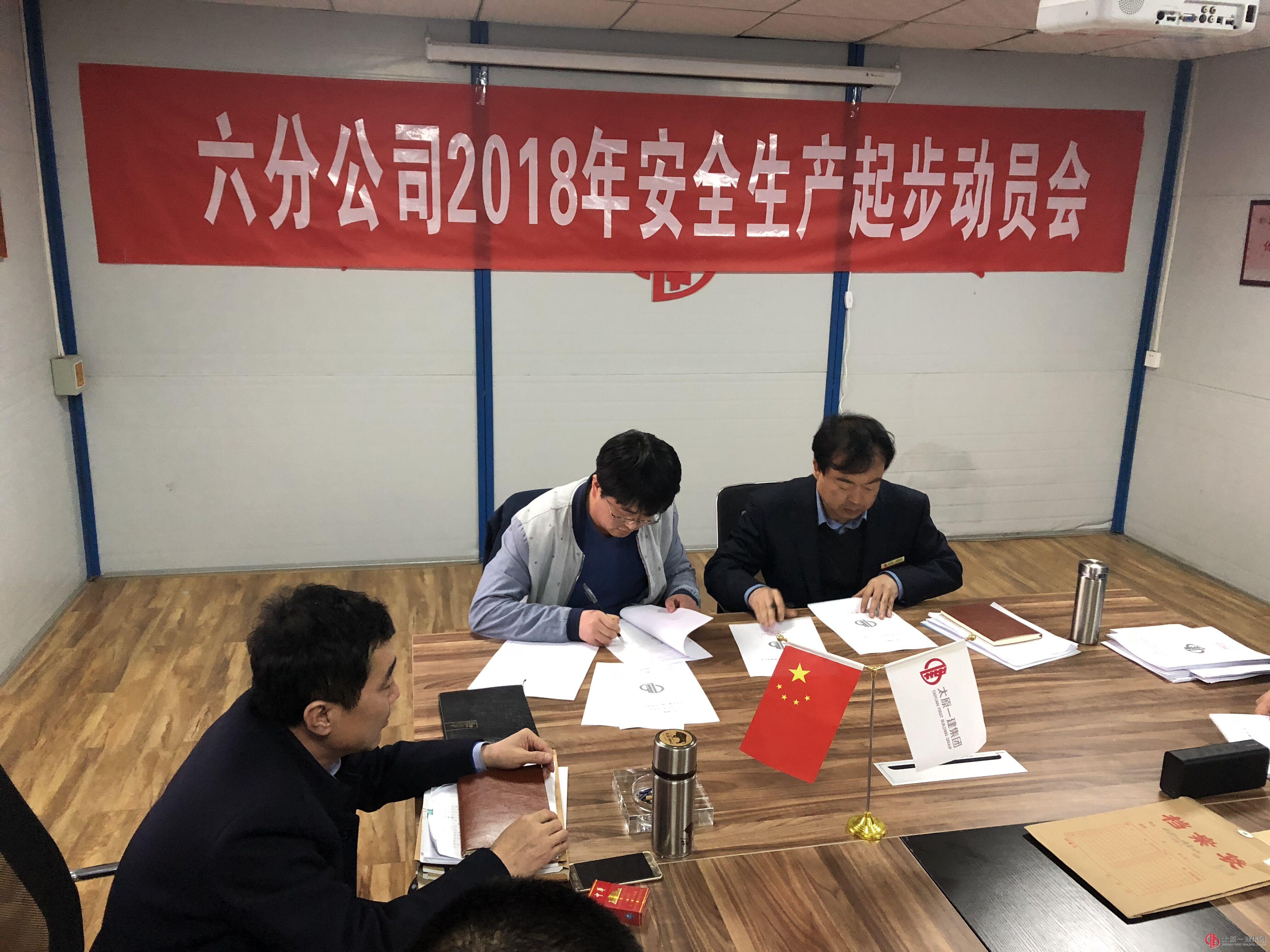 3月8日下午,六分公司组织全体管理人员在山西正通研发楼项目部会议室召开2018年安全生产起步动员会,集团公司分管领导李伟副总经理,核算三科付朝红科长应邀参加会议,会议在雄壮的太原一建集团司歌—筑起希望和铿锵有力的员工誓词声中开始,会议主要内容:一是全体管理人员学习贯彻了集团公司2018年安全生产起步动员会上王董事长、李总经理的重要讲话和安全生产工作安排、安全生产整治活动的安排等系列文件精神,特别是王董事长提出的安全管理工作坚决做到“八个必须”,李总经理提出的高质量经营,抓好“揽、干、算、收、管”五个方面的重点,是指导分公司2018年安全生产,提高经营质量的工作指南;二是核算科付朝红科长针对分公司材料、费用、票据以及如何安全经营进行了讲解,并提出了要求;三是集团公司李伟副总经理、分公司经理薛军为六分公司在2017年度受到集团公司表彰及分公司表彰的优秀项目部、先进科室、个人进行颁奖;四是薛军经理对分公司2018年安全生产起步进行动员;五是集团公司李伟副总经理对六分公司成立以来一年上一个台阶,发展势头良好给予了充分的肯定,提出要抓住 “两头”既抓住市场开发的龙头,抓住现场管理的重头,抓好“两个起步”( 既思想认识的提高,施工现场的生产起步)提出五点希望:1进一步加强领导班子建设,提升项目班子管理水平和能力;2要高度重视基础管理工作,要注重全面发展;3全面加强经营管理,提升经营质量;4必须保证安全生产,做好复工前的安全隐患检查;5分公司要注重人才培养,提高年轻职工执业取证率。李伟副总经理对分公司基础管理方面的薄弱环节进行了帮助和指导。会上,薛军经理与各项目部负责人签订了2018年项目部经营管理目标责任书等六个责任书,安全生产起步会的召开,预示着六分公司生产经营各项工作全面启动,赵敏主持会议。