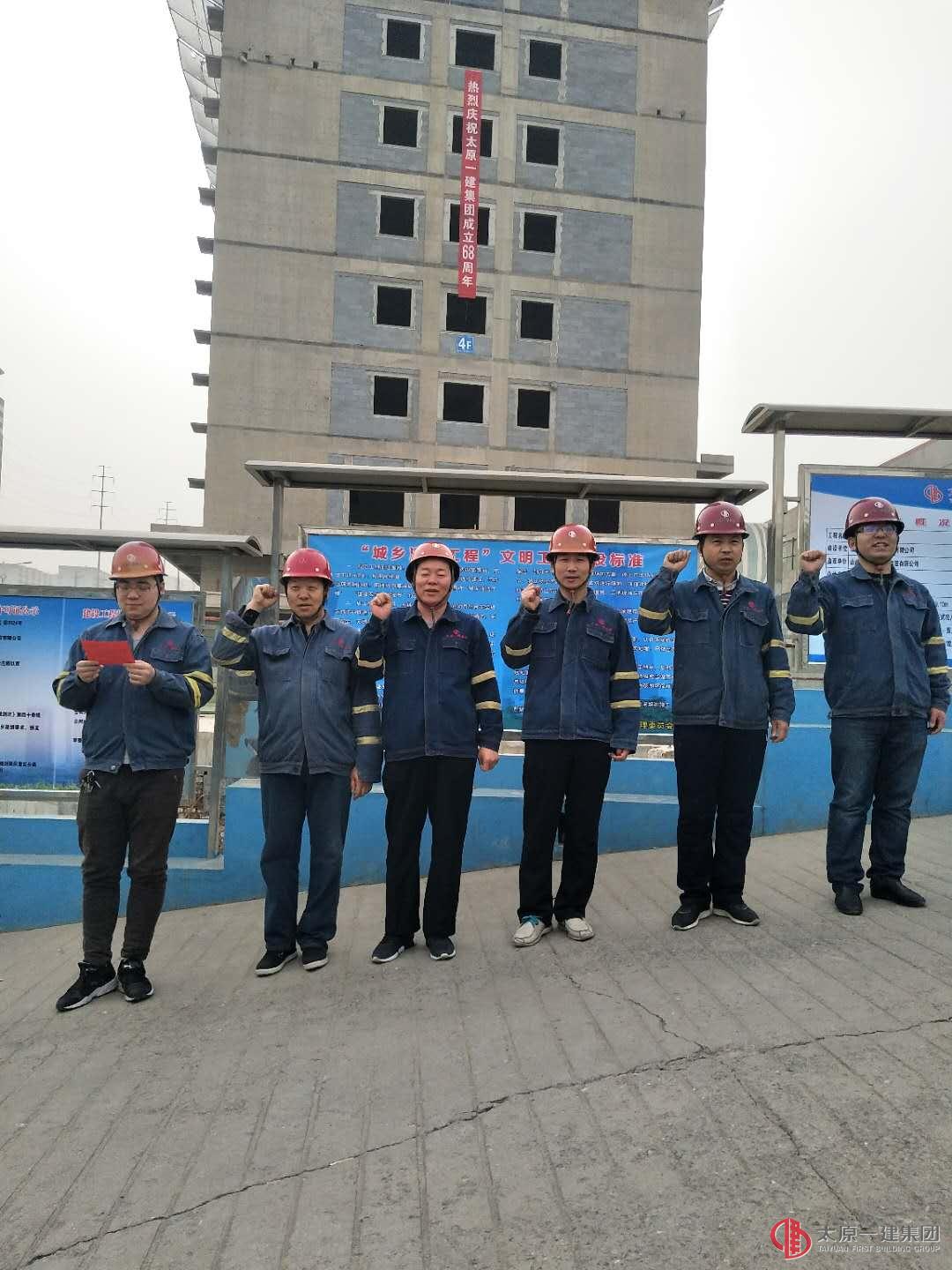 4月10日是太原一建集团成立68周年的日子。在这喜庆的日子里,直属分公司各施工现场悬挂条幅,开展升国旗、唱司歌、诵员工誓词活动来庆祝。分公司驻地在经理郭贵法的带领下也进行了系列活动:⒈工会主席刘卫红带领大家唱司歌、诵员工誓词。⒉支部副书记高卫国重温了“集团公司二季度党群工作会议”精神。并对分公司党建工作进行了具体安排。⒊支部书记郭贵法向大家提出,以“4月3日”会议精神为指导,认真按照集团公司二季度党群工作要求,按时、逐项完成各项具体工作,推进分公司党群工作助力施工生产。⒋在分公司大院进行了授家文化牌仪式。集团公司董事长王贵聪带队一行8人深入分公司授家文化牌。我们太原一建人在集团公司的正确领导下,弘扬“家”风,促动全体员工凝心聚力,务实创新,自强致胜,不忘初心,不忘初衷,不忘根本朝着百年强企梦目标奋进!