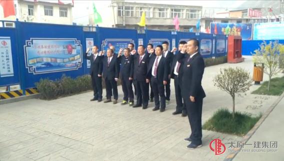 天空中,红色的国旗、白色的司旗、绿色的安全旗三面旗子迎风飘扬,音乐响起时大家齐声唱响司歌,接着在三面旗子下庄严宣誓。在这个特殊的日子里,集团公司董事长王贵聪带队,一行八人为我分公司授予“家”文化牌,此时此刻的大家都为自己是一建员工而感到骄傲和自豪。