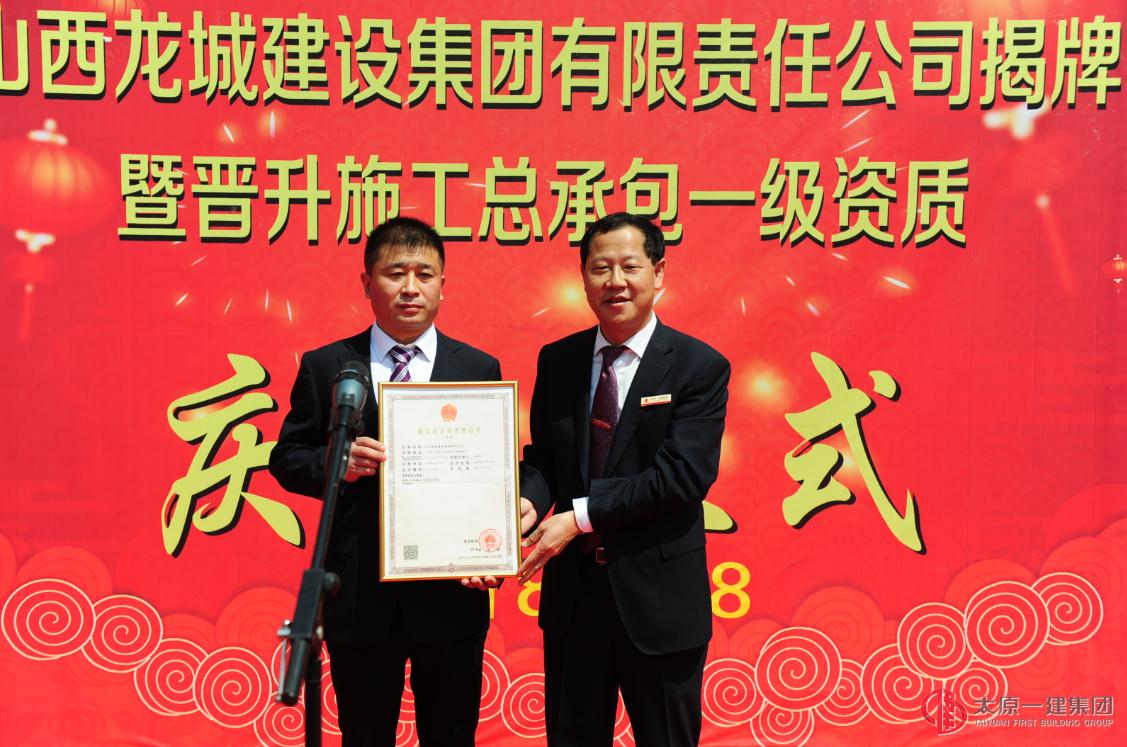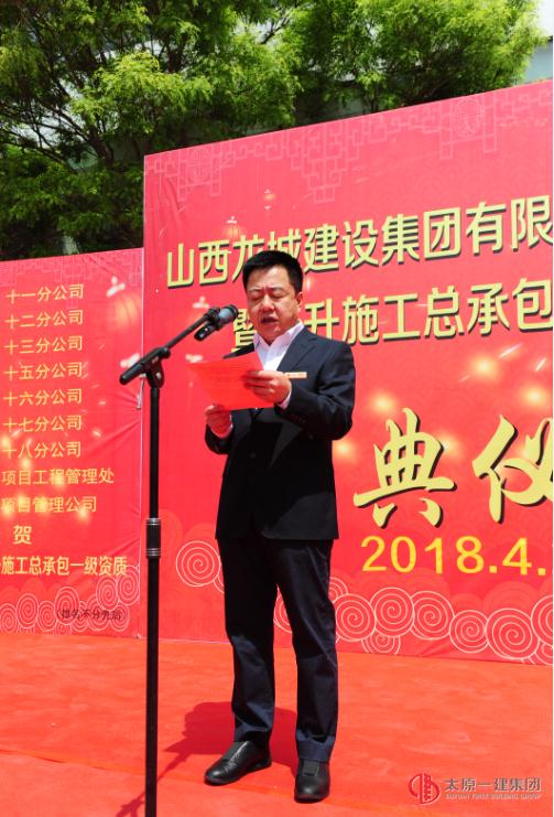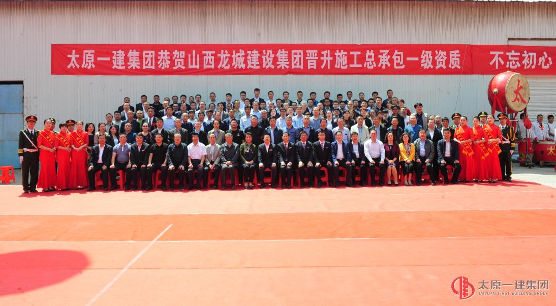 2018年4月28日,阳光明媚,彩旗飘飘,锣鼓喧天,龙城建设集团有限责任公司在总部大院里举行了庆祝晋升施工总承包一级资质暨揭牌仪式的庆典。上午8点18分,龙城建设集团董事长任海鹏与新成立的4个子公司负责人共同进行了揭牌仪式。10点58分在省市建筑业协会领导们、兄弟友好单位、所有一建集团基层单位及龙城所有员工的见证下,集团公司董事长、总经理与龙城建设集团董事长、总经理共同揭牌。此庆典议程由工会主席张凯主持。在庄严的国歌,司歌,升国旗议程里,整个庆典也增添了仪式感。由集团公司总经理助理赵峰宣读国家住建部核准龙城建设集团公司房建总承包一级资质证书。集团公司总经理李世雄致贺词,并向龙城建设集团总经理李新发颁授资质证书。此时,太钢锣鼓队响彻龙城大院,全体员工掌声四起。龙城建设集团董事长任海鹏、总经理李新发、青年职工代表李阳分别作了表态发言。最后,省市建筑业协会领导,集团公司董事长王贵聪作了重要讲话。所有与会人员合影留念,庆典圆满成功。