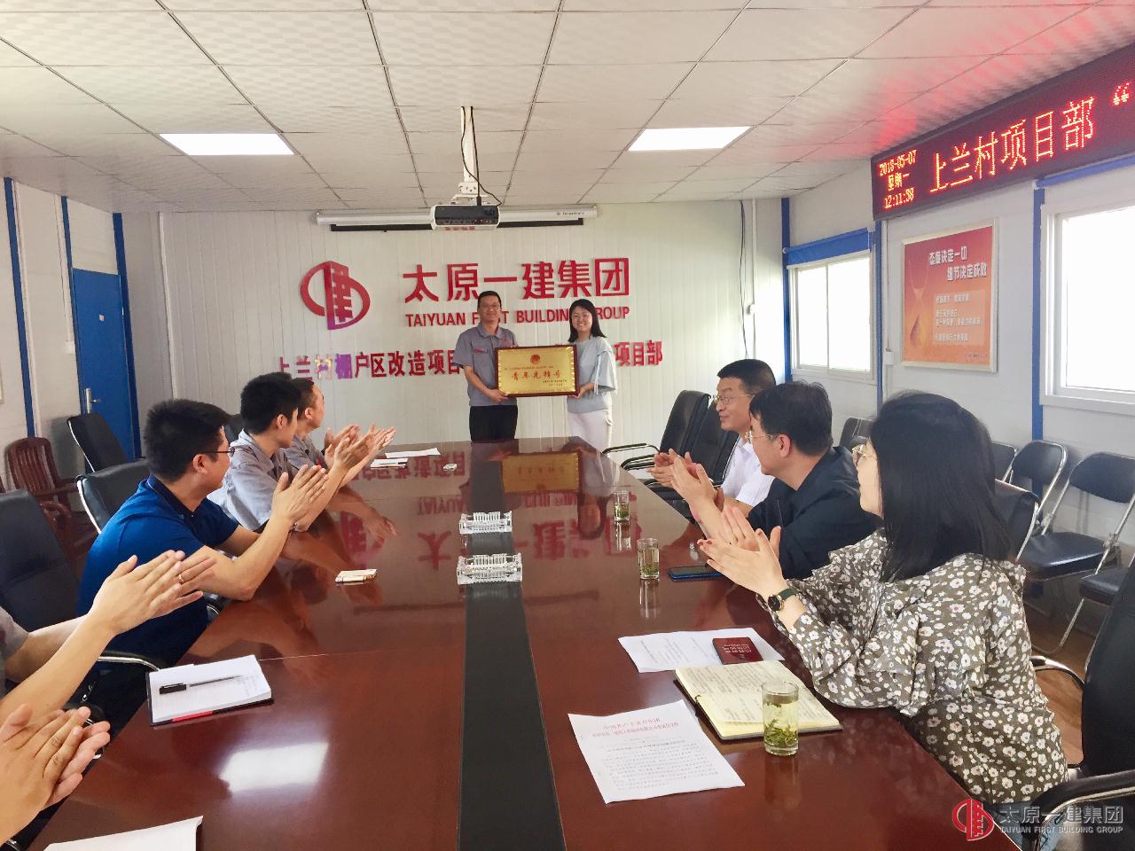 5月7日上午,集团公司副董事长党委副书记宋双玉、党委委员工会主席李瑞琪、团委书记徐婷、党群工作部郝君一行4人来我分公司承建的上兰村棚户区改造项目(怡和· 天润园)项目部进行“青年先锋号”授匾仪式。