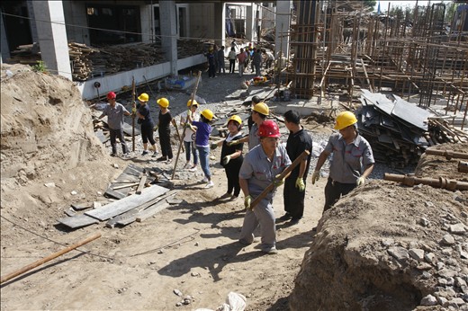 8月18日、21日、22日、24日四天,集团公司总部机关全体领导和各部门工作人员计300人/次分四个作业组在集团公司迎“中博会”重点工程项目汾河景区1号管理用房工地参加劳动。此次劳动是企业改制以来规模较大、时间较长、难度较大、任务艰巨的一次集体劳动,是一次争分夺秒,抢工赶时的突击性劳动,是企业改制后机关工作作风的锤炼,团队精神展示的一次检阅,无论是领导还是员工,无论是男同志还是女同志,无论老同志还是新同志,个个都汗流浃背,苦累不怕,为了一个共同的目的就是抢工期完任务,经过四天紧张而有序的劳动,将1#管理用房的钢管、扣碗架、扣件、木龙骨、竹胶板等周转材料全部从主体内搬运清理到主体以外并分类整理码垛和装车,受到工程处领导和项目部职工和劳务队的赞扬,通过四天的劳动为主体砌筑抢出了时间,达到预期目的,为该工程按期竣工赢得了时间,更为迎“中博会”的胜利召开作出积极的贡献,同时,也收获吃苦耐劳,团结拼搏的劳动精神。