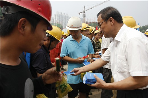 8月5日上午,太原市总工会为农民工送清凉活动在集团公司直属项目一部承建的滨河西路项目工地上隆重举行。10时许,太原市人大副主任、太原市总工会主席刘明珠,太原市副市长张政等领导,率太原市总工会各部门带着西瓜、白糖、绿豆、毛巾、矿泉水等慰问品,来到现场亲切慰战高温、顶酷暑奋战在施工一线的广大农民工兄弟。张政副市长发表讲话,对广大农民工兄弟在太原市城市建设中做出的突出贡献给予了高度赞扬,进一步传达了党和国家重视农民工工作,关心关爱农民工的方针政策。全体农民工以热烈掌声对领导们的慰问表示由衷的感谢。刘明珠主席、张副市长、集团公司董事长王贵聪等领导同志,端着西瓜等慰问品来到农民工兄弟中间,一边送上慰问品,一边亲切交谈,高度体现了太原市人民政府、太原市总工会、我集团公司对农民工工作“以人为本”的理念。活动由集团公司劳务中心和直属项目一部具体承办,太原市总工会副主席李小龙主持了慰问仪式。太原市入并建筑企业工会联合会常务副主席张仲年、集团公司工会主席王斌参加了活动。