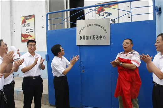 8月5日上午11时,集团公司钢筋加工配送中心举行揭牌仪式。集团公司总经理王贵聪、副总经理宋双玉、总工程师路志旭、总会计师赵晨辉及机关相关部门负责人任秀山、范立强、李隆、付朝红、门红,检测中心主任,钢筋加工配送中心付主任曲志刚、财务人员董中仙和钢筋加工配送中心部门员工参加了揭牌仪式。路志旭主持揭牌仪式并宣布集团公司组建钢筋加工配送中心(经发2011)38号文件和关于郭瑞彪,曲志刚的聘任通知(经发2011)39号文件,钢筋加工配送中心主任郭瑞彪作表态发言,集团公司总经理王贵聪作了重要讲话。王贵聪、郭瑞彪在鞭炮声中共同为钢筋加工配送中心揭牌。
