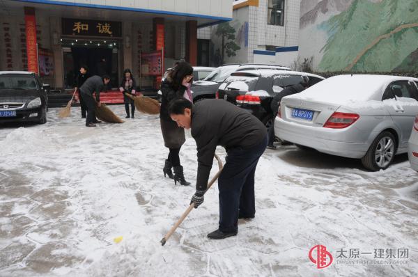 12月14日早晨,机关全体人员清扫机关大院及门前三包责任区内的积雪。