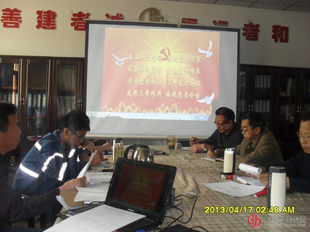 二、党支部副书记付朝红向全体党员传达并解读了集团公司党委并一建发【2013】2号二O一三年企业党建工作安排文件精神,通报了3.19集团公司党群工作会议精神。