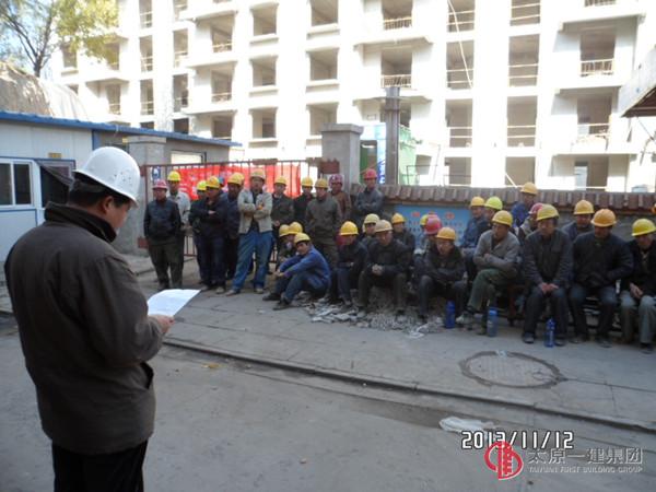 11月12日上午,分公司召开安全工作会议,会议由分公司经理王东升主持。会议主要内容:1、分公司经理王东升传达了11月11日下午集团公司召开的紧急会议精神,学习了王总经理关于提出抓好安全生产的四点要求。对集团公司下发的《关于开展安全生产排查整治紧急通知》文件在第一时间下发到各科室和项目部。要求科室和项目部负责人组织认真学习领会,坚决执行安全生产各项规定要求并真正落到实处。2、分公司立即成立安全隐患排查领导小组,对所有在建项目分别进行安全隐患排查治理工作。并明确了排查的时间和人员的组织分工。3、要求项目部立即成立安全生产隐患检查小组,由项目经理牵头每日进行安全隐患检查和整改活动,在第一时间把安全隐患消除在萌芽状态之中。会后在11月12---13日,分公司分别对太原选煤厂项目和山大二院项目进行了安全隐患排查工作,检查完后下达了安全隐患整改通知单。要求项目部定人定措施限期进行整改,分公司并按期进行复查整改的情况。将近中午召集项目部全体工人进行三级安全教育现场会,教育会上把近期建筑安全生产的形势和安全生产所注意的事项进行了详细的宣教。项目部要做好每日的安全巡检工作,坚决做到安全生产“零违章、零隐患、零事故”,确保安全生产目标顺利实现。