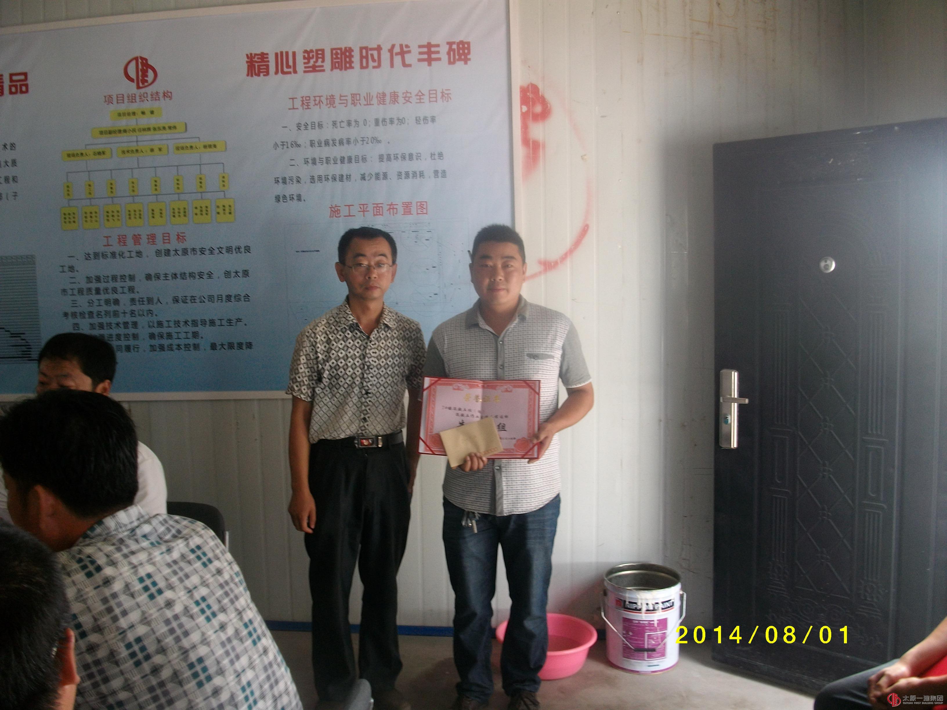 经营公司承建的荣兴天顺住宅小区工程经过近九个月的精心施工目前已进入主体封顶的冲刺阶段。安全文明施工与主体质量的提升,对工程建设的顺利开展起着至关重要的作用,为激励各施工劳务队热情和积极性,荣兴伟业房地产开发有限公司对三标段安全文明施工和一标段实体质量进行了物质奖励,同时对5个先进班组和个人进行了表彰。并希望受到表彰的劳务队、班组和个人继续提高标准,取长补短,力求全面发展,同时也号召各劳务队进一步强化管理,提高责任心,提高综合素质,提高自身管理水平,做到技术到位、交底到位、过程控制到位、检查验收到位,体现价值。并向受表彰的劳务队及个人看齐,不断掀起比学赶超的竞赛热潮,把荣兴天顺各项工作推向标准化、规范化,为实现安全文明、质量创优的目标而奋斗。