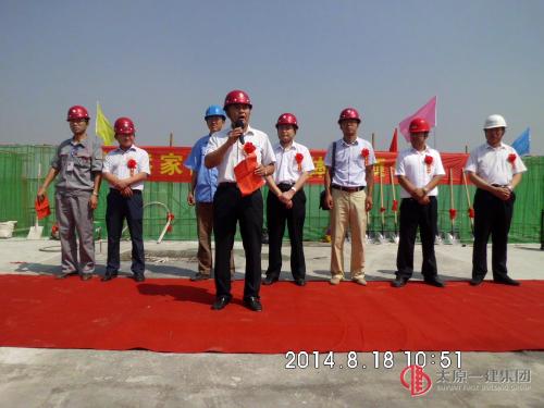 10:50,封顶仪式在1#住宅楼的楼顶举行,第一施工标段的承包人王安宗致开幕词,他首先感谢了前来参加封顶仪式的各位领导、同仁和工友,并介绍了1#住宅楼的施工情况。之后项目经理赵人和进行了讲话,他祝贺1#住宅楼在全小区率先封顶,同时表扬了第一标段以合格的工程质量和出色的安全工作顺利的通过了政府及公司相关部门的历次检查,为太原一建赢得了荣誉,表明了他们的项目班子过硬,骨干成员能力突出,希望第一标段再接再厉,在之后的二次结构施工中同样起好模范带头作用,为全小区的建设再立新功。中海佳园公司总经理董全民宣布封顶仪式正式开始。