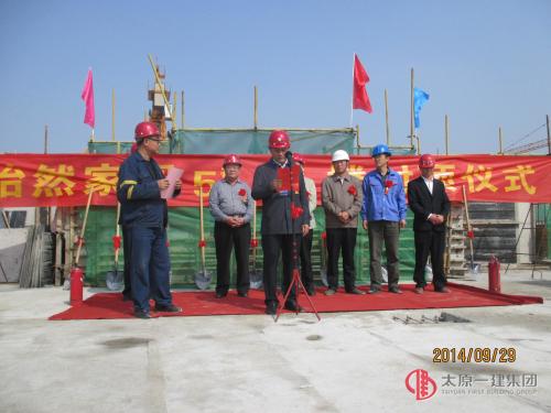 10:38,封顶仪式在5#楼的楼顶举行,第三施工标段的现场负责人徐建昌致开幕词,他感谢了前来参加封顶仪式的各位领导、同仁和工友,并介绍了5#楼的施工情况,并感谢业主方与集团公司给予的帮助指导。项目经理赵人和代表项目部全体人员进行了讲话,他首先祝贺5#楼的封顶,同时表扬了第三施工标段在艰苦的环境下能够克服千难万险完成主体施工任务,为中海佳园公司和太原一建集团赢得了荣誉,希望第三标段再接再厉,在之后的二次结构施工中加大管理力度,保证施工质量,更要确保施工安全,为全小区的建设再立新功。中海佳园公司总经理董全民宣布封顶仪式正式开始。