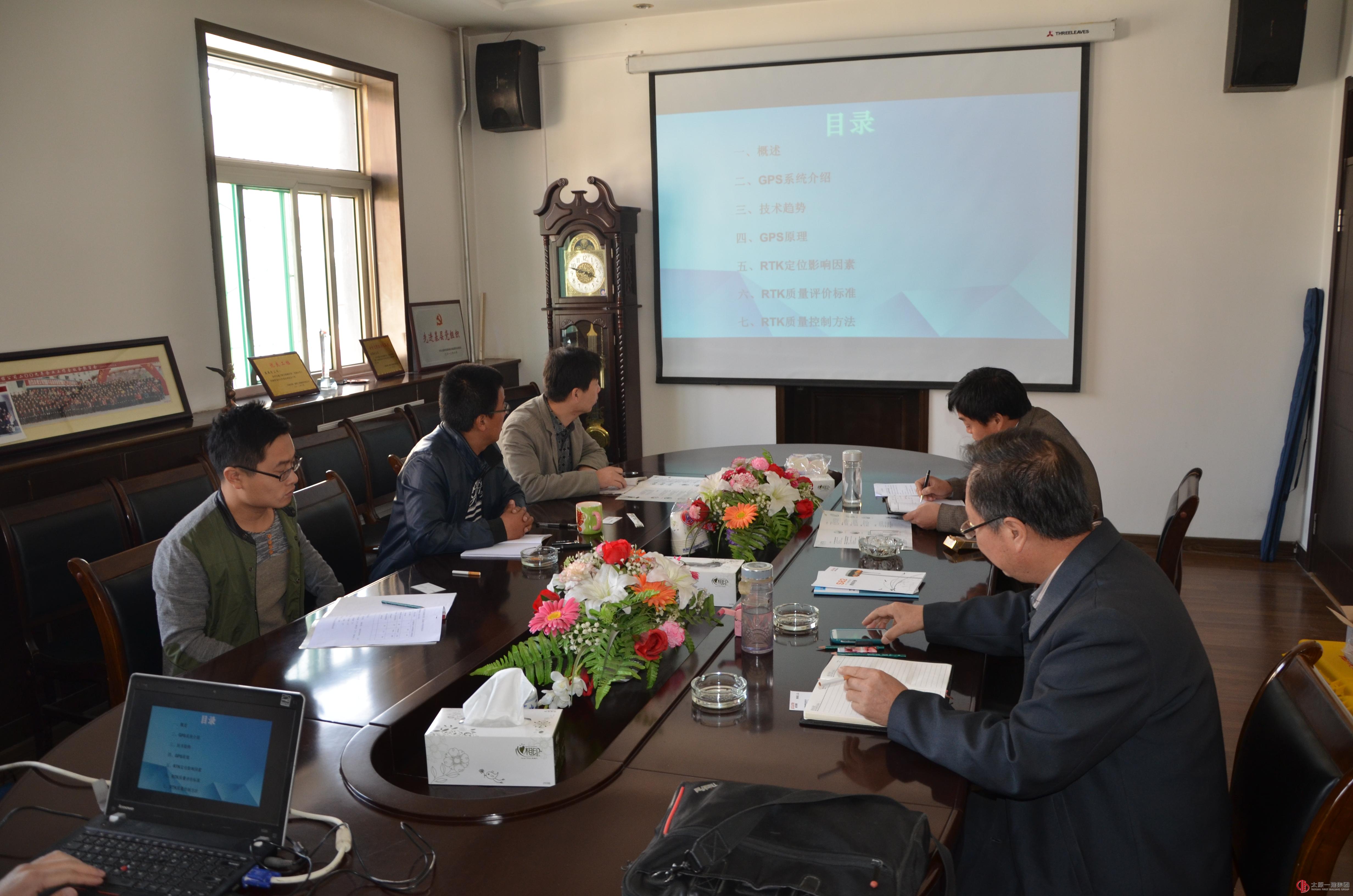 本次培训共一天,上午为理论学习。首先,由分公司经理郭贵法对本次参加培训的人员做了期望和鼓励。接着,由分公司副经理蔡志峰对本次培训内容做了简短介绍。RTK作为一种新的常用的GPS测量方法,为工程放样、地形测图等各种控制测量带来了曙光,极大地提高了野外作业效率。然后由邢保亮工程师对GPS测量方法、RTK测量的基本原理、仪器硬件介绍、测量软件介绍、测量系统一般操作流程、测量数据处理等方面做了详细而具体的讲述。