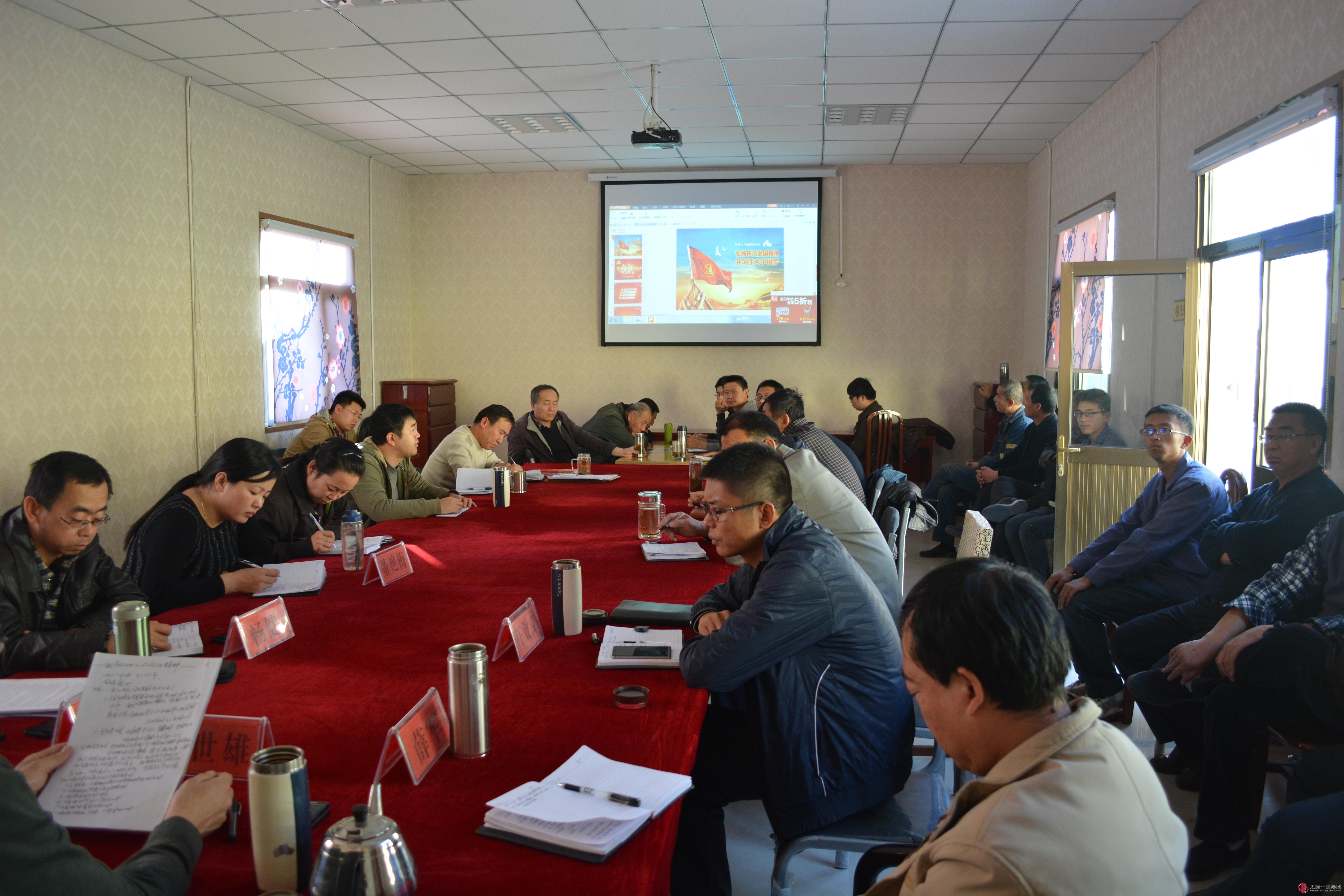 二、经理、党支部书记李世雄就学习贯彻十八届四中全会结合生产经营实际提出要求,详细的传达了集团公司10.29 会议精神,讲解了并一建经发34号、35号文件精神,并就经营公司后两个月的工作进行了安排:1、要高度重视,千方百计,有所推进;2、加强工程的结算工作,重点交校的结算,其他遗留工程要跟踪、跟进,成立结算组,明确专人参加,确定两名公司领导主抓结算;3、太钢不锈钢工业园区项目要争创市安全文明优良工地;4、对集团公司开展的建筑施工转包分包自查工作进行了专项安排布置;5、成立整理库房小组,对工地退回的材料进行规整、建账,进行细化管理;6、进一步加强团队建设,引深作风纪律和环境建设,并形成常态化。对班子领导成员提出要自加压力,当一名称职的领导,要提高领导的能力,员工首先要做一名合格员工,自己给自己定位,向优秀员工学习,做到学有榜样,干有方向。会议由经理办公室主任刘立柱主持。