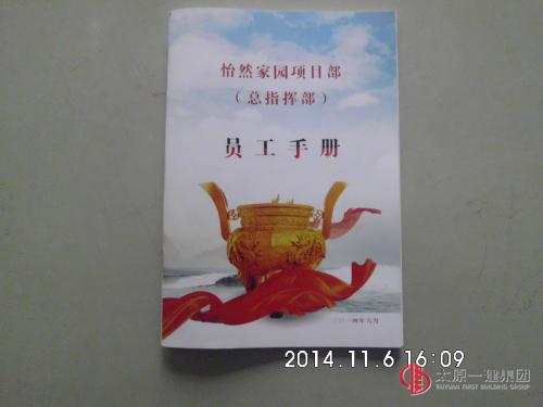 项目部员工首先从10月15日至10月26日每天早上8点开始学习由项目经理赵人和根据怡然家园项目实际情况而编制的《员工手册》,内容分为手册说明、项目简介、入职指引、员工纪律、行为规范、员工薪酬、福利规定、绩效考核、培训发展、奖惩措施、申诉规定、其他事宜等多个章节。每天都有一名项目部成员作为主讲人对手册内容进行宣讲和解释。在成员学习完全部手册内容后,项目部于10月31日下午,组织全体成员进行了关于《员工手册》内容的考试并打分,考试分数将作为员工绩效考核的依据。