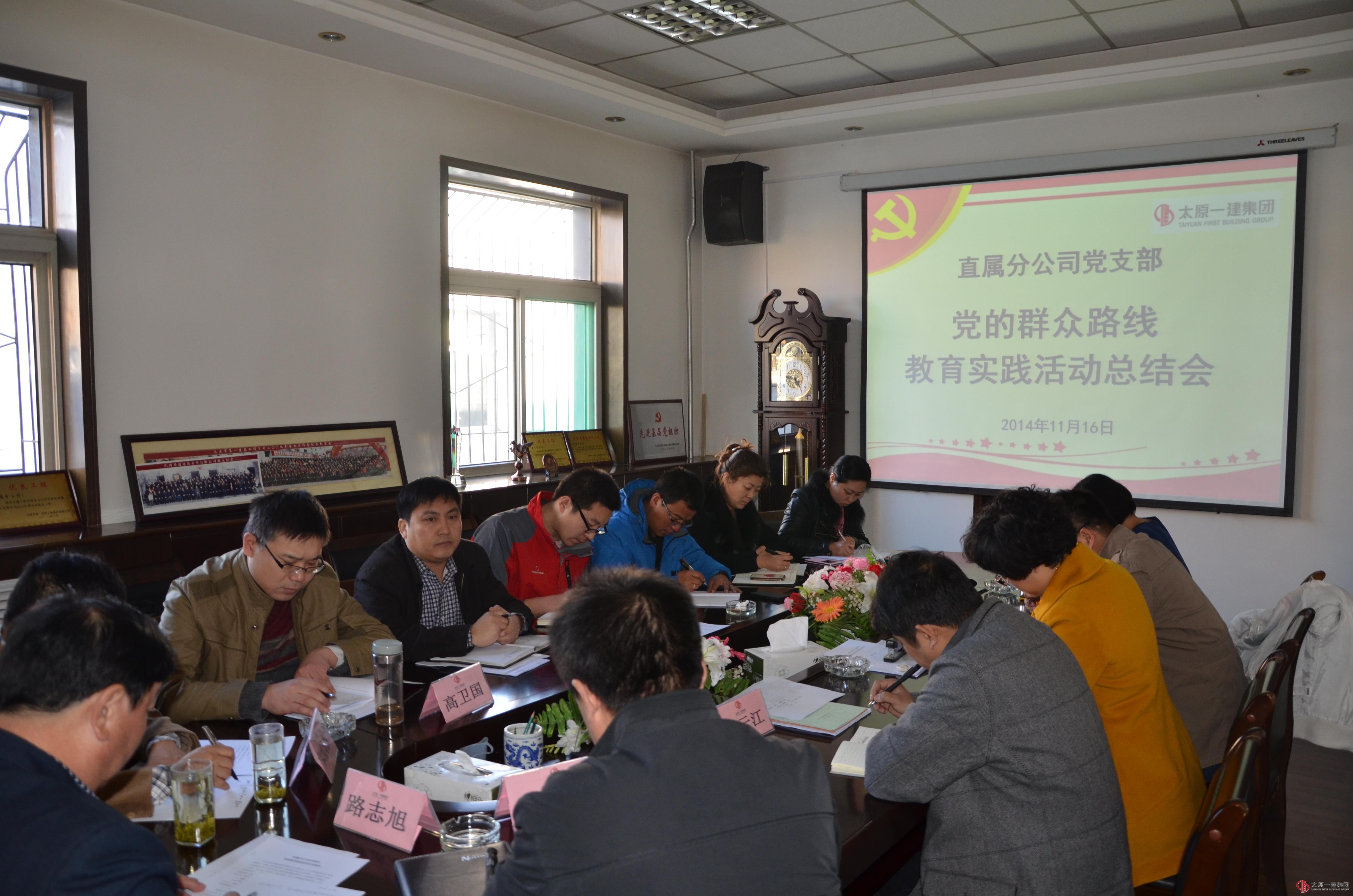 11月16日上午,直属分公司党支部组织分公司全体党员、中层副职、入党积极分子、群众代表在分公司会议室召开分公司党的群众路线教育实践活动总结及接收预备党员支部大会。会议由支部书记郭贵法主持。会议的内容有:1、分公司党支部书记郭贵法作分公司党的群众路线教育实践活动总结报告。2、第七督导组领导路志旭、刘洁对该活动作了总结和点评。他们对分公司活动开展情况给予了充分的肯定,同时指出了不足,提出了建议。3、分公司全体党员、中层副职、群众代表对分公司班子及党员干部在参加教育实践活动中的表现情况进行了民主评议。4、对接收孟文彪同志为中共预备党员事宜进行了讨论和表决。党支部书记郭贵法就本次会议作总结发言。他对督导组两位领导的中肯点评表示感谢。要求分公司各级干部和党员要按照督导组的要求,不断改进作风,继续努力,圆满完成集团公司交给我们的各项任务!。