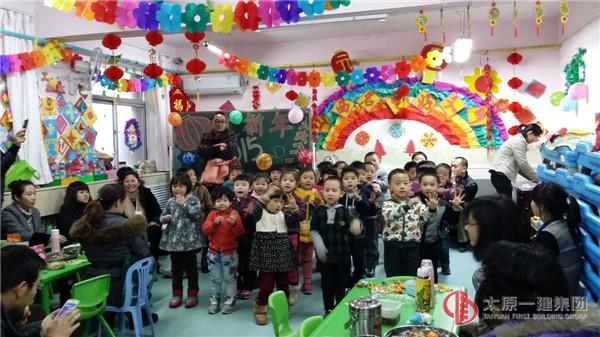 锣鼓喧天歌盛世,山欢水笑庆佳节。伴随着冬日温暖的阳光,伴随着即将敲响的新年钟声,幼儿园于2014年12月31日下午3:00在各班开展了一场“欢欢喜喜过新年”家园联欢活动。教室里张灯结彩,大门口红灯笼高挂,整个幼儿园里洋溢着新年的热闹气氛。