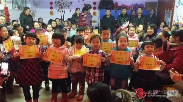 联欢会开始了,孩子们载歌载舞,用自己精彩的表演打动了在座的每一位家长。其中大班的“魔幻面具舞会”、草莓班的“山西名吃好又多”中班的“新年贺卡送祝福”等富有班级特色的主题活动以及芒果班令人捧腹大笑的亲子互动游戏、小班魔法时装表演秀、香蕉班亲子歌表演等等,在赢得了家长的阵阵热烈掌声的同时也让家长朋友们在2014年的最后一个下午跟孩子们一起尽情的享受节日的快乐。外教与小朋友的互动将整个活动推向了高潮。园长李莉萍特意为孩子们送上了节日的礼物和祝福,还为小朋友们颁发了“阳光宝贝”、“健康宝贝”、“爱心宝贝”、“智慧宝贝”等奖状。孩子们稚嫩、纯真的表演,让到会的家长们兴奋不已,他们纷纷拿起摄像机、照相机,尽情的为孩子们记录了这快乐的场面,忙的不亦乐乎。