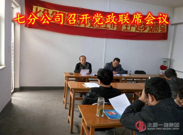 3月30日下午2:30,七分公司召开党政联席会议,会议由分公司经理郭建新主持,分公司副经理、项目经理、科长等12人参加。