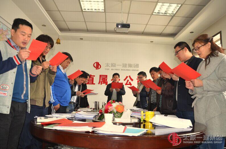 4月6日上午,直属分公司党支部在分公司会议室以座谈会的形式开展“爱企业、有作为、守纪律、懂规矩”主题教育活动。会议由党支部副书记高卫国主持,分公司班子成员、全体党员、团员参加了会议。会议的主要内容是:一、党支部书记郭贵法介绍开展“爱企业、有作为、守纪律、懂规矩”主题教育活动的背景,明确召开本次会议的意义。二、党支部副书记高卫国再次强调集团公司3月28日会议精神。三、共同深入学习《2015年企业党建工作安排》、《2015年工会工作安排》、《2015年团委工作安排》文件和习近平总书记关于守纪律、讲规矩系列讲话精神及集团公司党委书记王贵聪在机关干部见面会上的讲话精神。四、在共同唱《司歌》、观看纪录片《铁人王进喜》后,分公司全体参会人员以“爱企业、有作为、守纪律、懂规矩”为主题,结合自身本职工作,企业实际,企业“家”文化,从爱企敬业自己如何做,遵章守规自己做得如何,本单位、本部门有哪些不守纪律的现象等方面展开讨论,通过查找自身工作中的不足,结合工作实际提出了整改措施。五、党支部书记郭贵法针对本次主题教育活动提出三点要求:1、要正确对待,深刻理解本次会议召开的目的和意义。2、要适应形势,身先士卒,做好表率,全面提高自身素质。3、要立足本职岗位,钻研技术,脚踏实地,体现自我,与企业共同发展。本次会议在全体参会人员进行了庄严的《员工誓词》宣誓后圆满结束。
