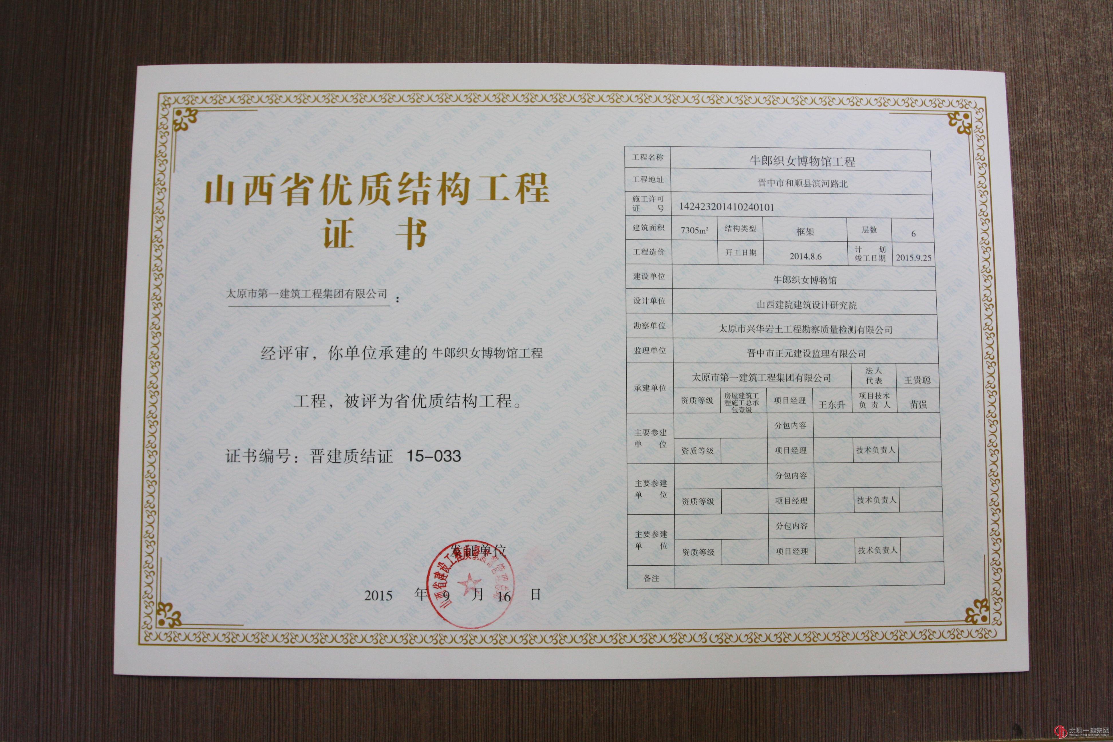 集团公司十三项工程分别荣获山西省优良、结构优质、绿色施工工程称号