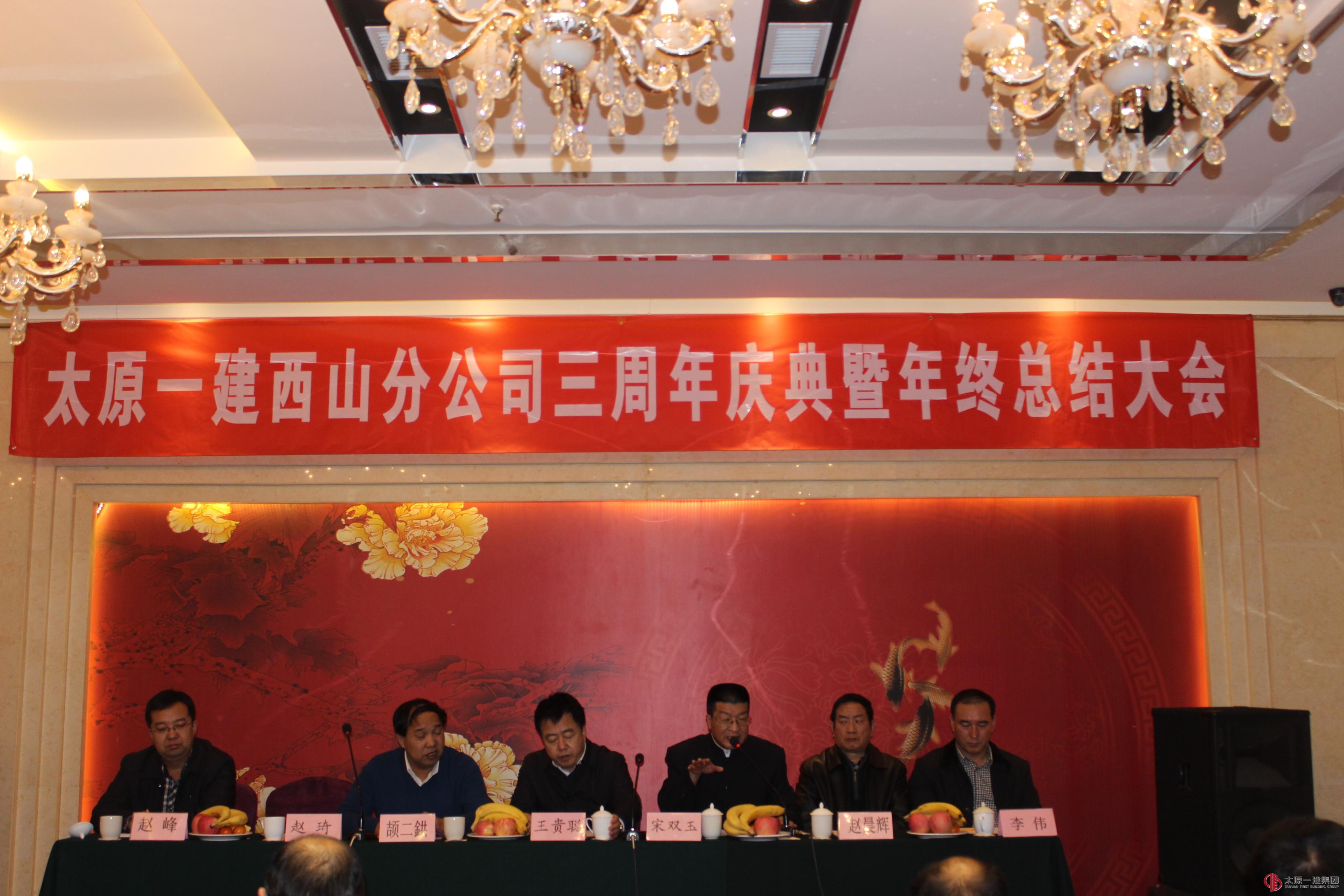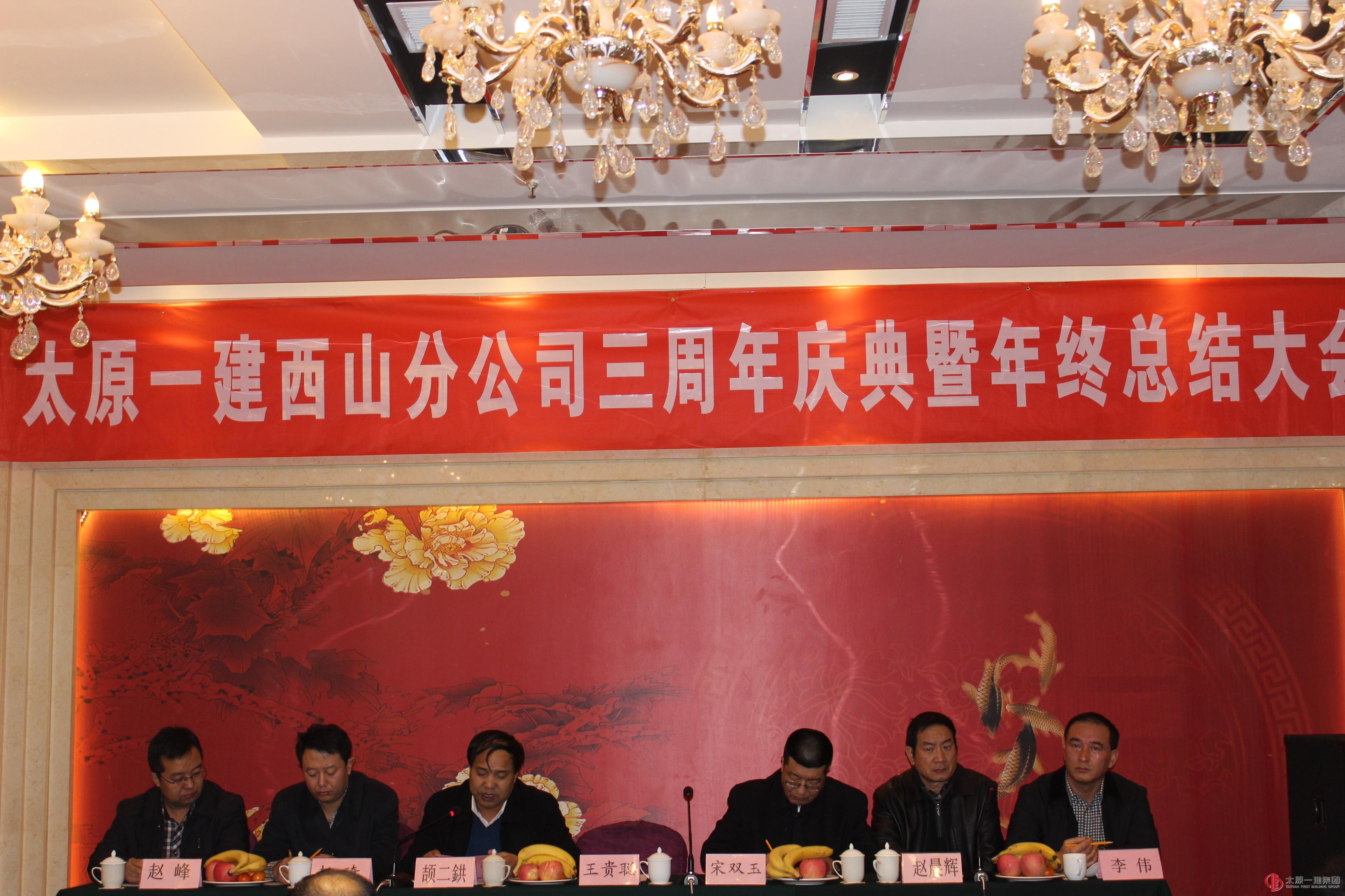 1月7号上午9时整,西山分公司全体员工和集团公司各部门主管领导在政协宾馆一楼会议室召开了“三周年庆典暨年终终结大会”。会议由副经理韩晨主持。集团公司领导和各部门负责人应邀参加会议。董事长总经理王贵聪、副董事长宋双玉、总会计师赵晨辉、副总经理赵琦、李伟、总经理助理赵峰在会上做了指导讲话。