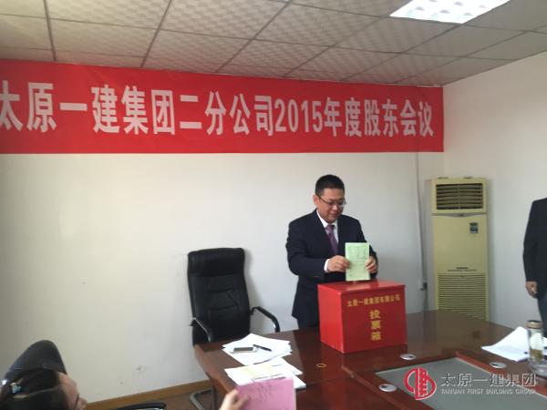 1月16日上午,二分公司在分公司会议室召开了2015年股东会议,会议应到股东16人,实到16人。会议由分公司经理刘海飞主持。会议的主要内容有: 1、分公司经理刘海飞传达了1月15日召开的股东预备会议精神;2、全体股东认真听取和审议了《2015年董事会工作报告》、《2015年监事会工作报告》、《2015年财务决算报告和2016年财务预算方案(草案)的报告》、《2015年度利润分配方案的报告》,审议了《第二个三年发展规划》执行情况的报告,听取制定《第三个三年发展规划纲要》的说明;3、与会人员相互探讨并对以上内容逐项表决,同时全票通过决议;4、股东选举第三届董事会董事、监事会(股东)监事。本次会议给予了每位股东充分的权利,促动每位股东切实履行好主人翁的职责,为集团公司第三个三年发展规划做出贡献!