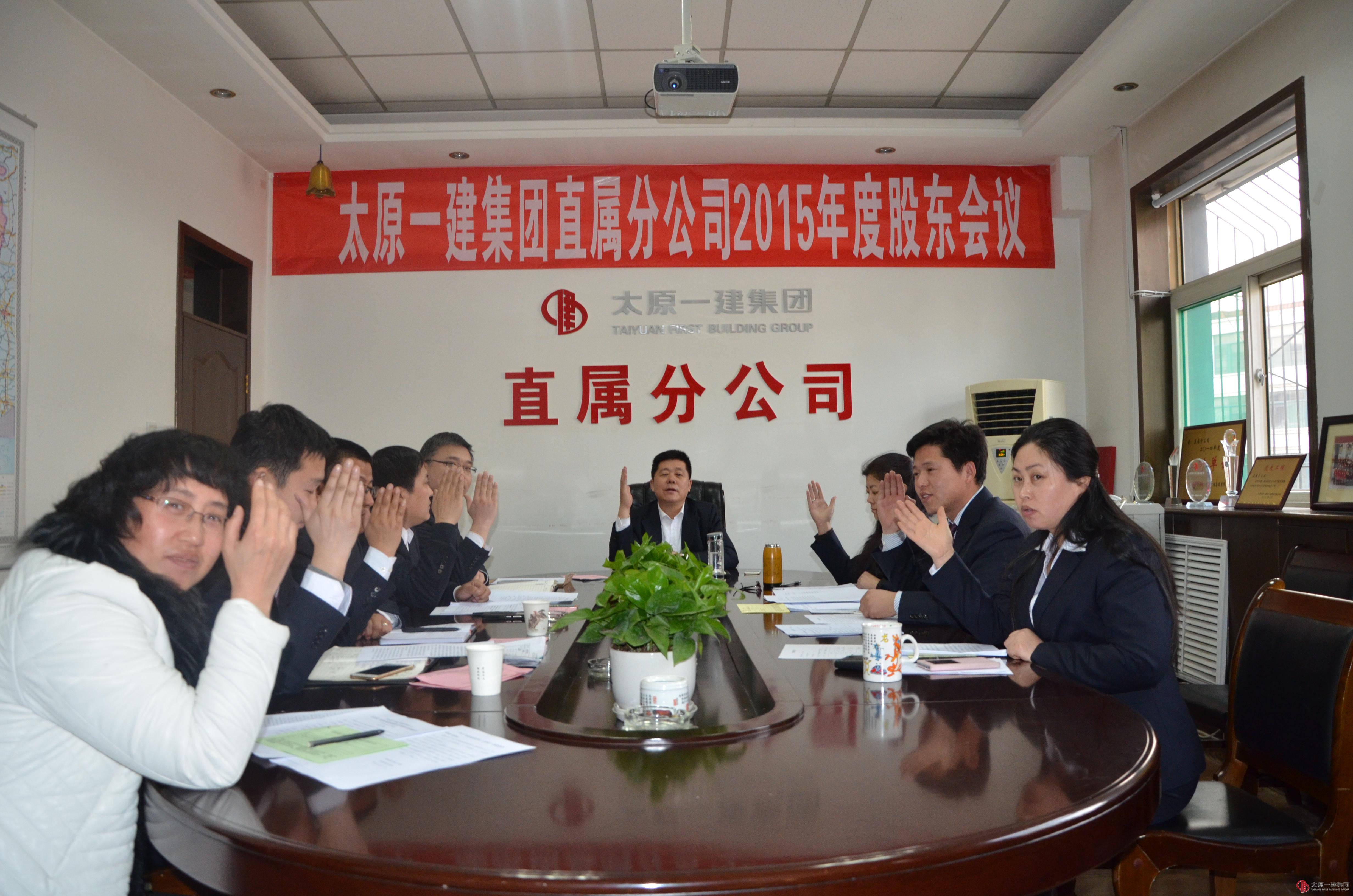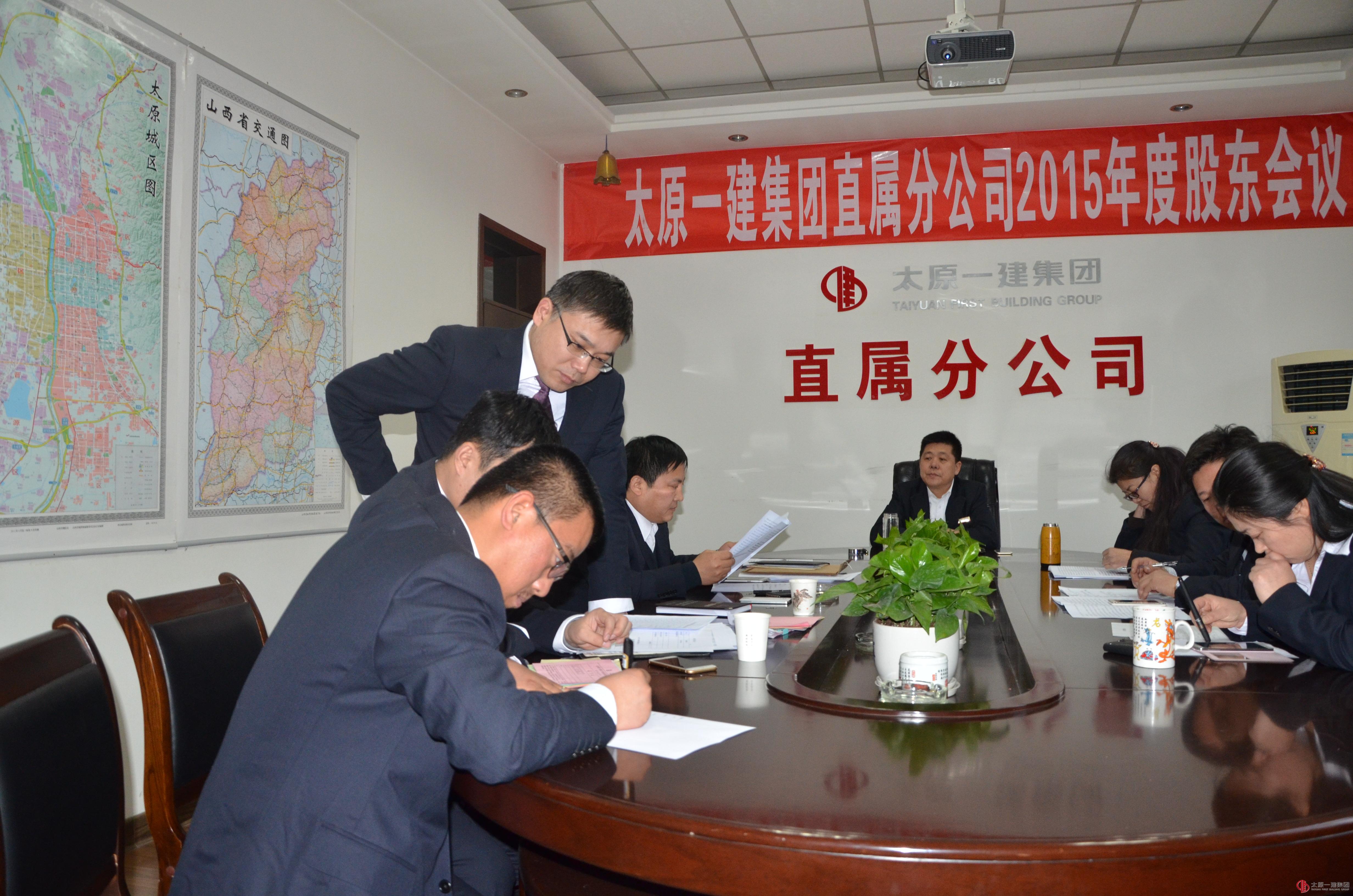 1月16日下午4:00,直属分公司在分公司会议室召开了2015年股东会议,会议应到股东11人,实到9人。会议由分公司经理郭贵法主持。会议的主要内容有: 1、分公司经理郭贵法传达了1月15日召开的股东预备会议精神。2、全体股东认真听取和审议了《2015年董事会工作报告》、《2015年监事会工作报告》、《2015年财务决算报告和2016年财务预算方案(草案)的报告》、《2015年度利润分配方案的报告》,审议了《第二个三年发展规划》执行情况的报告,听取制定《第三个三年发展规划纲要》的说明。3、与会人员相互探讨并对以上内容逐项表决,同时全票通过决议。4、股东选举第三届董事会董事、监事会(股东)监事。本次会议给予了每位股东充分的权利,促动每位股东切实履行好主人翁的职责,为集团公司第三个三年发展规划做出贡献!