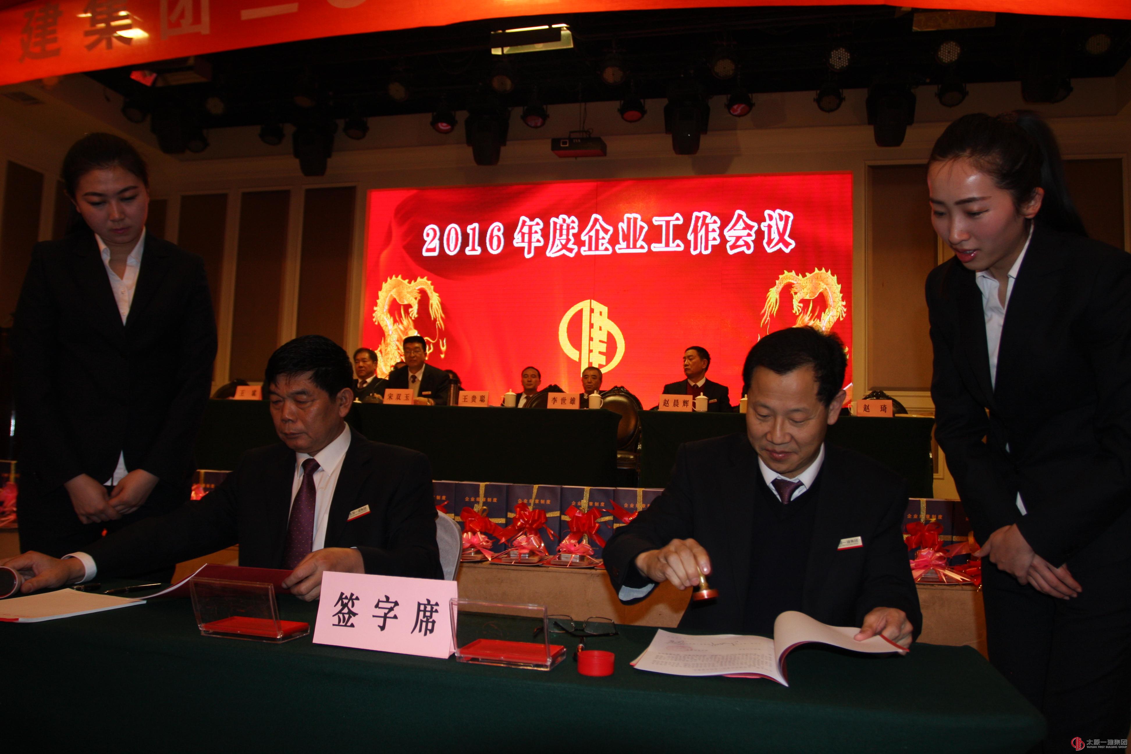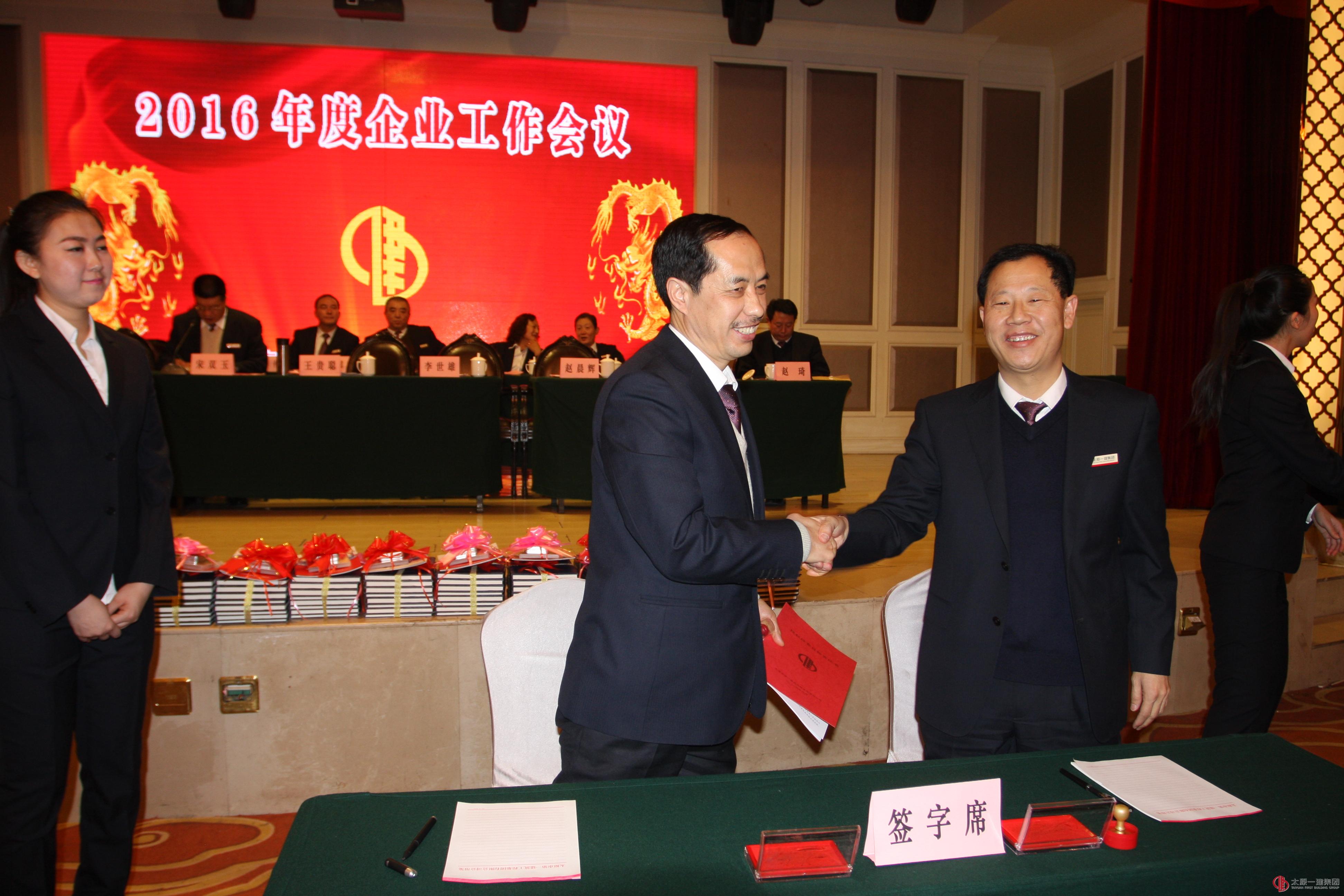 2016年1月30日上午8时,集团公司2016年企业工作会议在江南大酒店召开。集团公司董事会、监事会、经理层全体领导、各基层单位领导班子全体成员、公司机关全体人员计300余人参加了会议。副董事长宋双玉主持会议。会议在嘹亮的《筑起希望》歌声中开幕。①人力资源部部长范立强宣布2016年集团公司机构调整及人事聘免决定;②总经理李世雄作2016年企业工作安排报告;③常务副总经理张岐泰宣读颁发企业规章制度的通知和第三个三年发展规划纲要的通知;④董事王斌宣读颁发企业形象文化宣传的通知;⑤总会计师赵晨辉作关于签订经营目标责任书的说明;⑥董事长王贵聪分别为30个基层单位颁发了《企业规章制度》、《第三个三年发展规划纲要》和《企业形象文化宣传片》;⑦总经理李世雄分别与一分公司、二分公司、三分公司、四分公司、五分公司、六分公司、七分公司、八分公司、九分公司、十分公司、十一分公司、十二分公司、十三分公司、十五分公司、十六分公司、十七分公司、十八分公司、广东分公司、项管处、项管二处、直属分公司、直属二分公司、直属三分公司、直属四分公司、直属五分公司、直属六分公司、吕梁分公司、建安分公司、经营公司、龙城公司等30个经营负责人在经营目标书上签字。⑧工会主席李瑞琪宣读表彰决定,集团公司领导分别为2015年的模范单位:一分公司、七分公司、十分公司、直属分公司;优秀单位:二分公司、三分公司、十三分公司;先进单位:经营公司、九分公司、十七分公司、十九分公司、广东公司、项管处、项管二处以及18个好团队和10名好员工代表颁奖;⑨基层单位代表赵志鹏、机关部门代表郭俊斌分别代表基层单位和机关部门在大会上作表态发言(全文另发);⑩集团公司党委书记董事长王贵聪作重要讲话(全文另发)。最后,宋双玉就贯彻会议精神提出“按照广泛深入的要求抓好发动;按照全面细致的要求抓好贯彻;按照扎实有效的方法全面抓好落实三方面的要求。