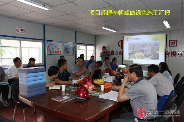 验收会议开始,会议分四项进行,首先由项目经理李朝峰对心血管病医院门急诊楼项目绿色施工概况、施工要点、难点、实施措施、技术创新、绿色施工亮点及取得的成效进行了简单的汇报;第二项专家组分为三个小组对现场绿色施工四节一环保实施措施进行检查验收及对绿色施工资料进行查阅;第三项专家组对该项目的检查验收情况进行评审讨论并进行打分;第四项专家组对该项目进行了点评并宣布验收结论:该施工现场小而精,进门就能感受到浓厚的绿色施工氛围,无论从质量还是安全方面做的都很好,该项目的最大亮点是施工降水所抽出的废水经处理后再利用,每个降水井都有开关进行分别控制,三套控制箱开关排列有序,这套水循环系统做的非常到位,从作业区、生活区、办公区进行分系统管理,充分达到了节水减耗的目的;再有就是建筑垃圾全封闭管理,采用废旧的模板做成垃圾箱和花池,即美化了现场,又减少了建筑垃圾的排放;还有就是废旧钢材可利用和不可利用的分别堆放,套丝机所产生的铁屑回收等。最后专家组组长进行了总结,对我们做出的成绩进行了肯定:一是一建集团领导的高度重视,二是施工现场工作人员的工作积极性和工作热情,有今天的成绩是很不容易的,从去年到今年验收一公司绿色工地有了很大的提高,有了一个质的飞跃。经我们专家组讨论一致同意该项目打分为85分以上,评为绿色施工优良工地。