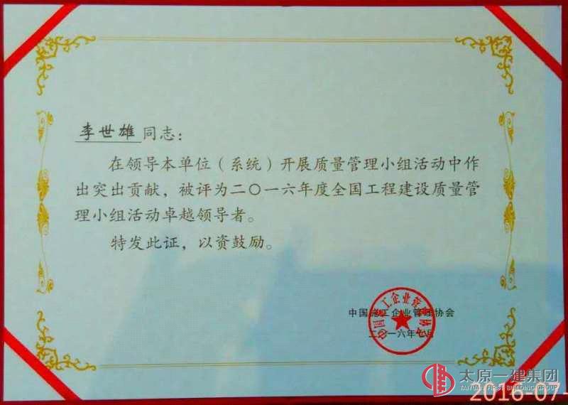 中国施工企业管理协会2016年度优秀QC成果活动发布会在福建省厦门市隆重召开。会议的主题是“万众创新•扎实推进•分享提升”。来自全国各地700余家施工企业共928个成果(涵盖管理型、创新性、现场型、公关型和服务型)全部进行发布。我集团公司吕梁分公司汾阳监狱项目部QC小组课题《提高超大斜坡烧结瓦屋面施工质量合格率》荣获二等奖。另外通过协会评审我集团公司荣获2016年度全国工程建设质量管理优秀企业、总经理李世雄被评选为全国工程建设质量管理卓越领导者、汾阳监狱项目经理吴原宏被评为全国工程建设质量管理小组活动优秀推进者。在此表示祝贺。