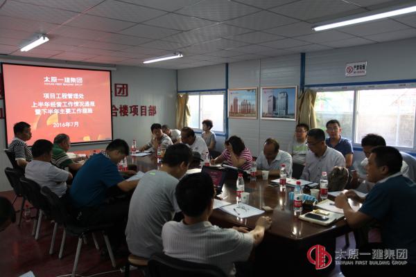 2016年7月27日上午,项目工程管理处在山西省心血管病医院门急诊综合楼项目部召开了项管处上半年经营工作情况通报暨下半年主要工作措施会议,会议由处长李朝峰主持,项管处处室全体人员及各项目部项目经理参加,会议首先由主任会计师孙天明从财务的角度对上半年的经营进行了分析报告;由副处长、主任工程师刘泰宏从生产的角度对上半年的经营进行分析报告;处长李朝峰从总的方面进行了项管处经营工作情况的通报暨对下半年主要工作措施进行了安排部署;最后分管领导司中谦对项管处后半年的工作作了指导性的发言