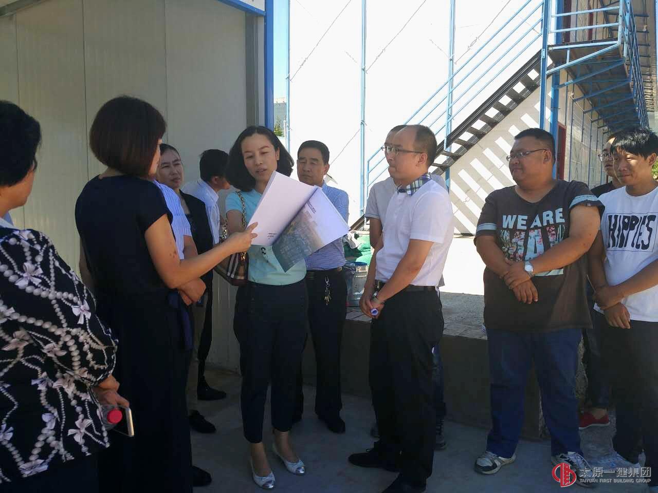 2016年9月1日下午,晋城市城区区长王文全、常务副区长王丽、副区长连陆军和王东升、钟家庄街道办事处主任陈志刚、甲方蔡总等领导莅临我直属三分公司承建的晋城瑜园老年公寓项目工地视察指导工作。