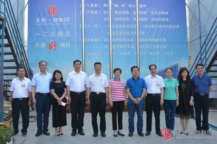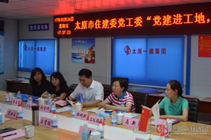 5月26日下午太原市住建委党工委副书记郝明俐等一行五人莅临十三分公司承建的山西省委党校综合办公楼项目部,进行“党建进工地 引领促发展”专题调研活动,集团公司党委书记王贵聪、副书记宋双玉、党委委员李伟、李瑞琪和十三分公司党支部书记孟计根及分公司党支部委员等共同出席参加。郝明俐书记在项目部负责人陪同下参观了施工现场,工人生活区,在会议室观看了项目BIM宣传片,先后听取了集团公司党委书记王贵聪对项目的简要介绍与分公司党支部书记孟计根关于项目党建工作的汇报,郝明俐书记就现场情况与党建工作的成效给予了充分肯定,并表示住建委将全力支持指导项目部的党建工作与创建工作,把“两学一做”教育活动常态化制度化。