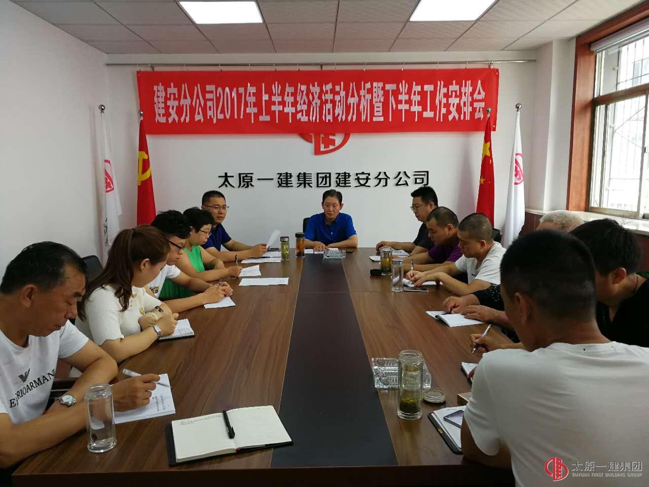 2017年8月2日下午,建安分公司在会议室召开2017年上半年经济分析暨下半年工作安排会,分公司全体员工参加,主管领导、集团公司监事会主席范立强应邀参加,会议由分公司经理李伟主持。