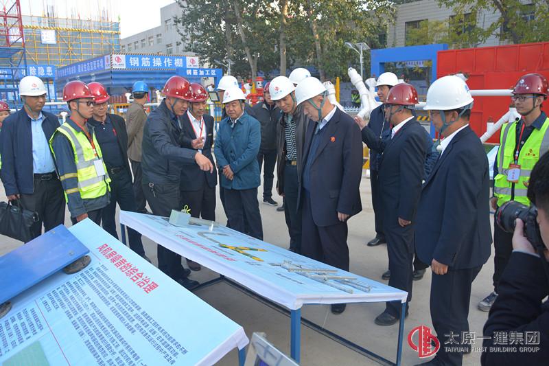 2017年10月24日下午,中国建筑业协会副会长兼秘书长吴涛及协会成员、山西省建筑业协会会长王国正、副会长张新民等领导来到我集团公司十三分公司承建的山西省行政学院(中共山西省委党校)综合教学楼项目,就该项目实施的BIM+智慧·绿色情况予以现场观摩指导。集团公司董事长王贵聪、十三分公司经理孟计根、项目经理张晋峰及集团公司有关负责人陪同。
