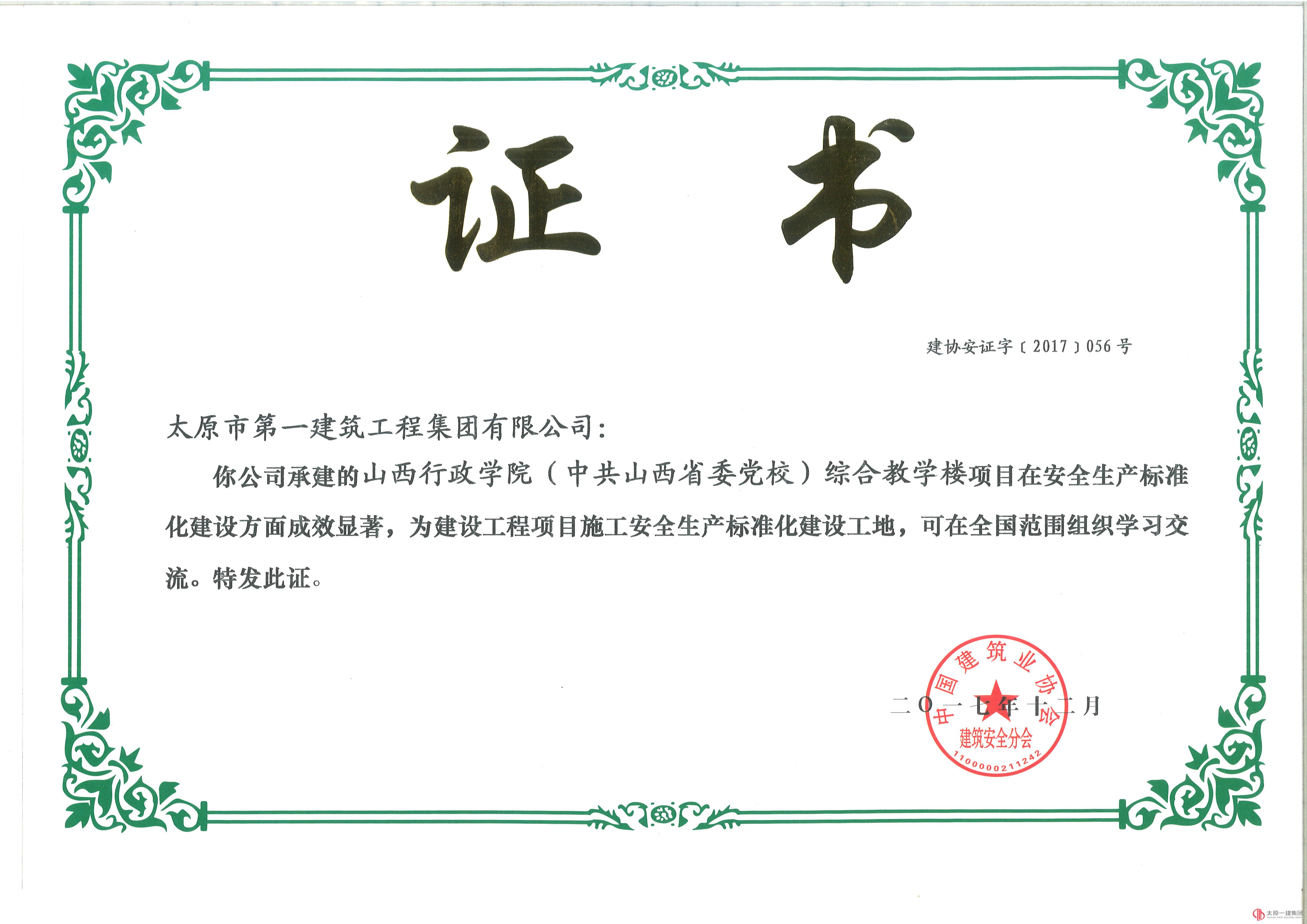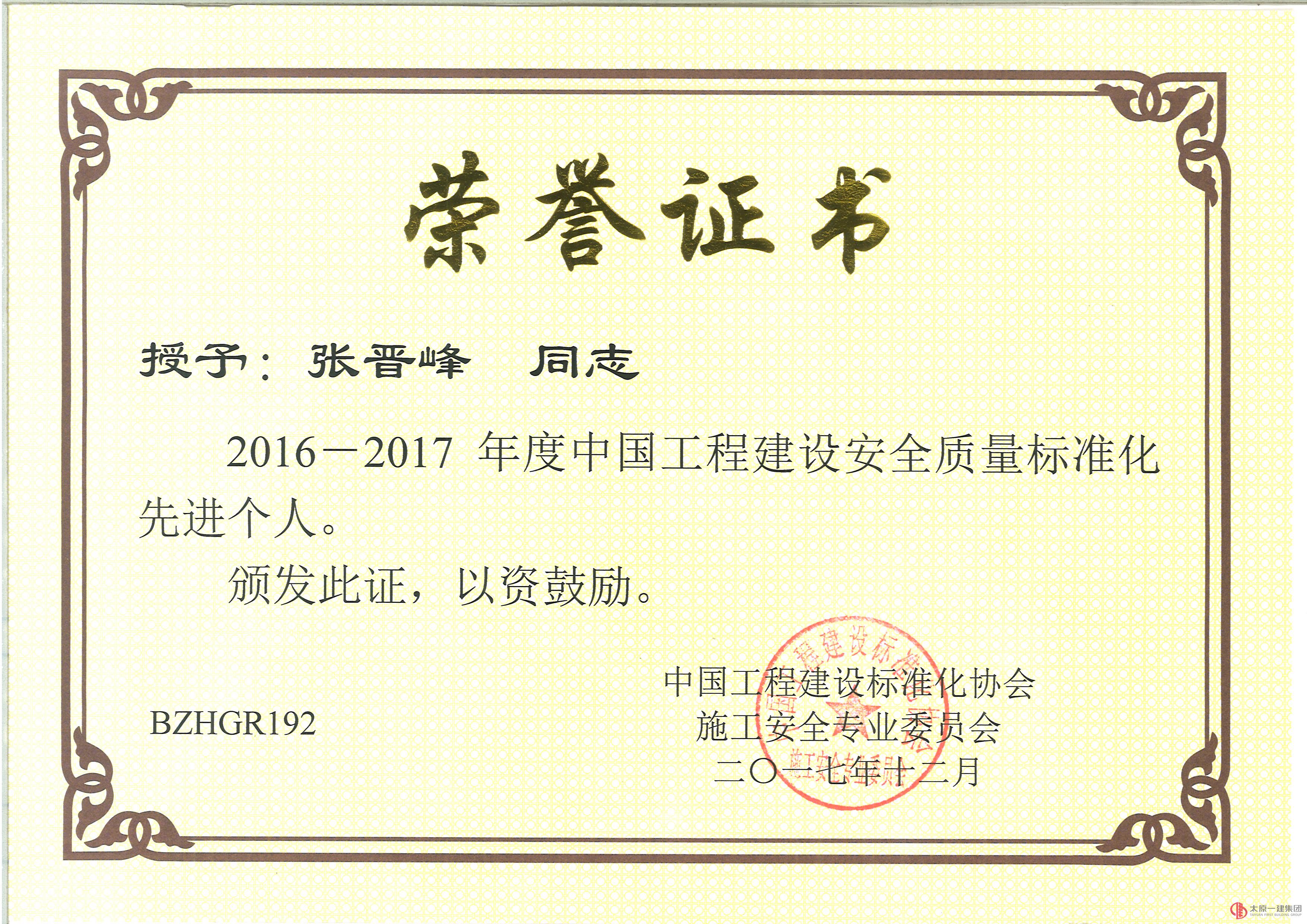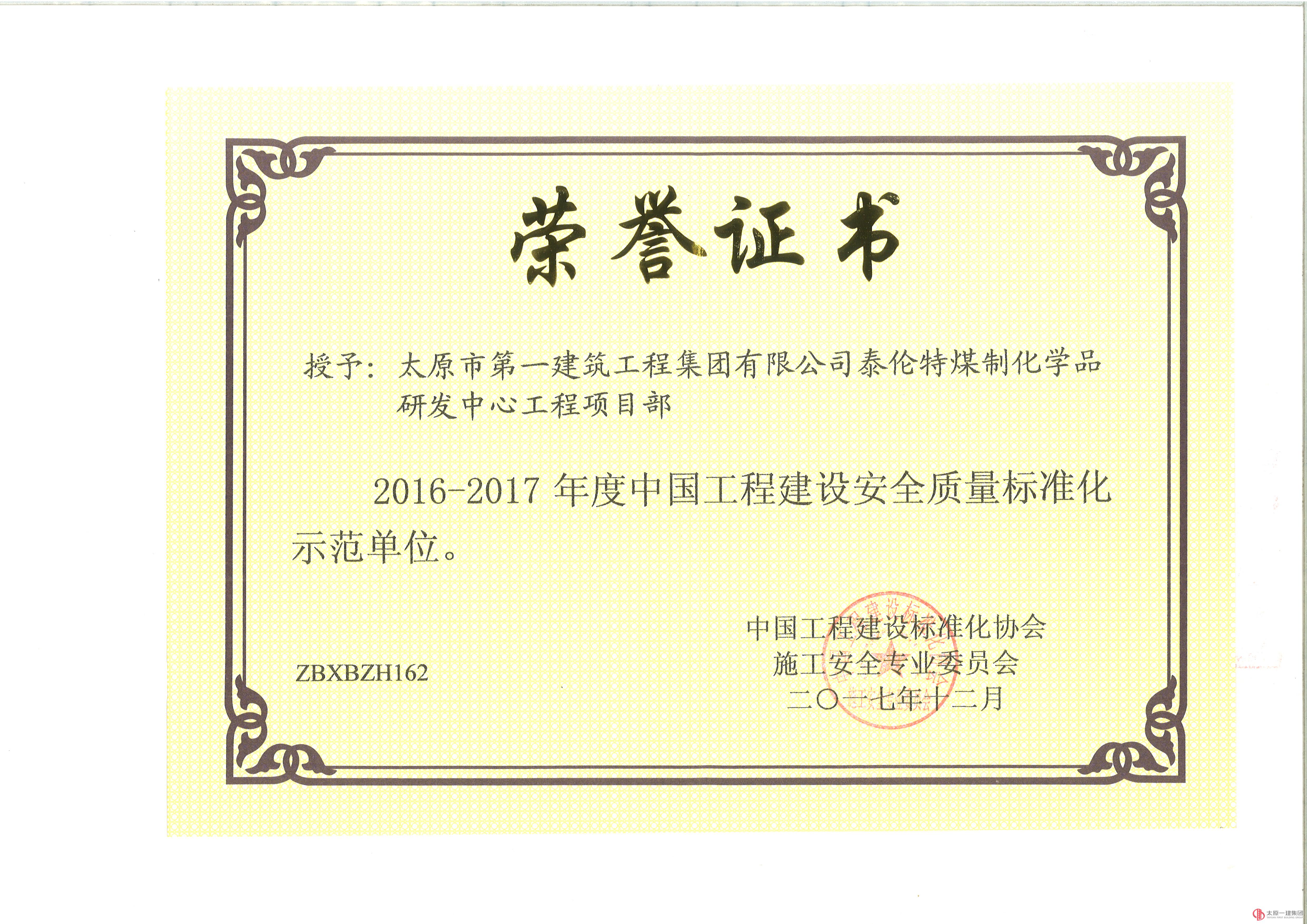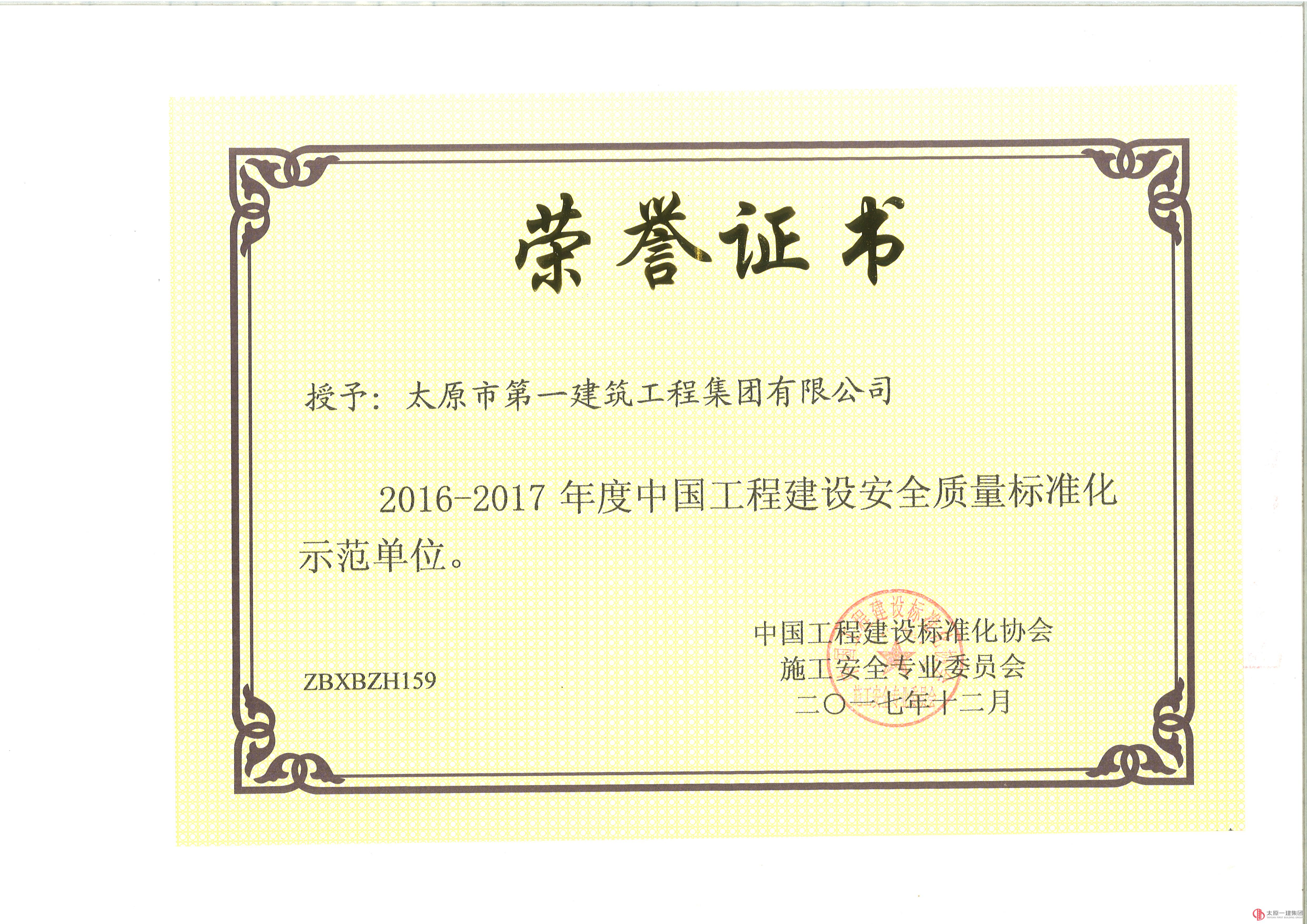 集团公司被评为2016-2017年度中国工程建设安全质量标准化示范单位