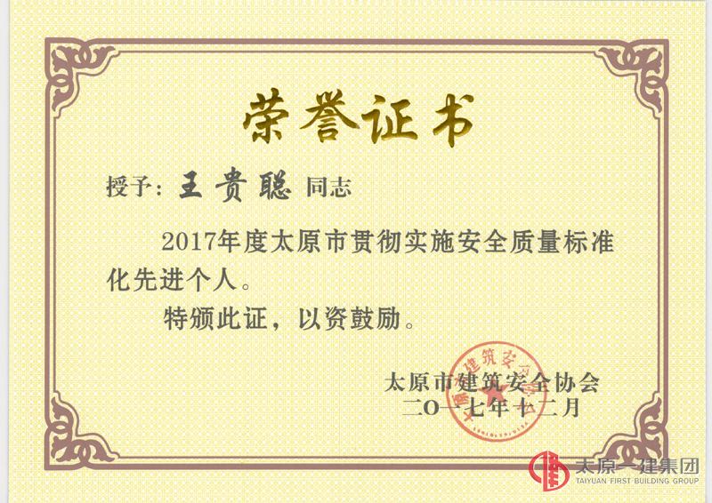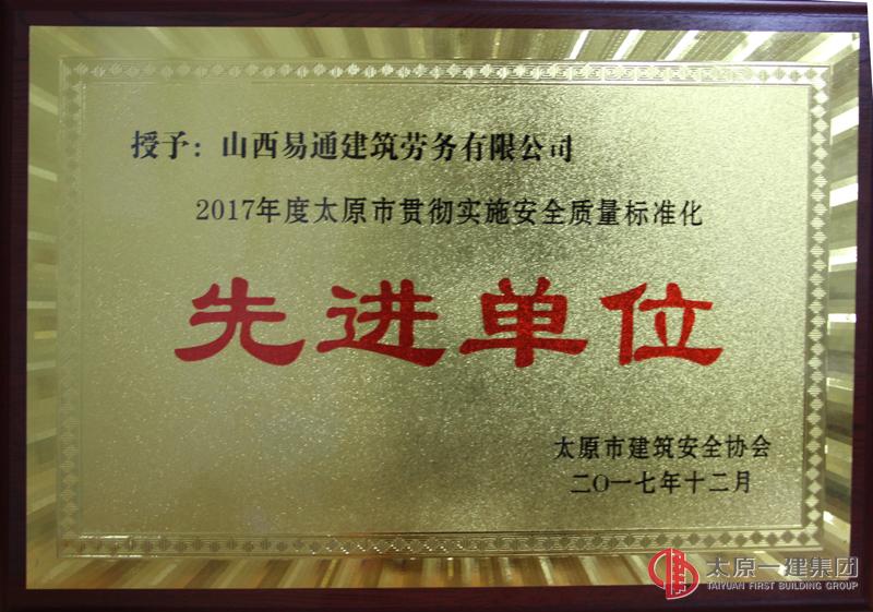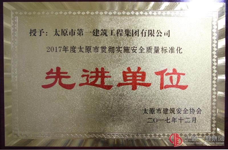 12月29日上午,太原市建筑安全协会在三桥大厦组织召开“太原市建筑安全协会2017年度工作总结暨表彰大会”。会上,太原市第一建筑工程集团有限公司、山西龙城建筑路桥有限公司、山西易通建筑劳务有限公司荣获2017年度太原市贯彻实施安全质量标准化先进单位。集团公司董事长王贵聪、总经理李世雄荣获2017年度太原市贯彻实施安全质量标准化先进个人。集团公司总经理助理赵峰当选为太原市建筑安全协会常务副会长,荣获2017年度太原市贯彻实施安全质量标准化突出贡献奖,并于大会上在贯彻实施安全文明标准化管理经验方面做了交流发言。这些荣誉的取得,是集团公司一年来在贯彻实施安全质量标准化工作中努力付出的具体表现,在新的一年里,我们将继续秉承“务实创新,自强致胜”的企业精神,牢记自己的责任和使命,争取2018年取得更大的成绩。